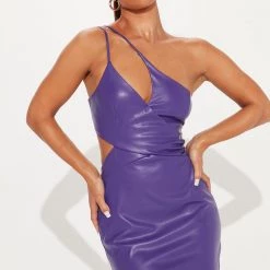 Fashion Nova It Girl Faux Leather Mini Dress – Purple