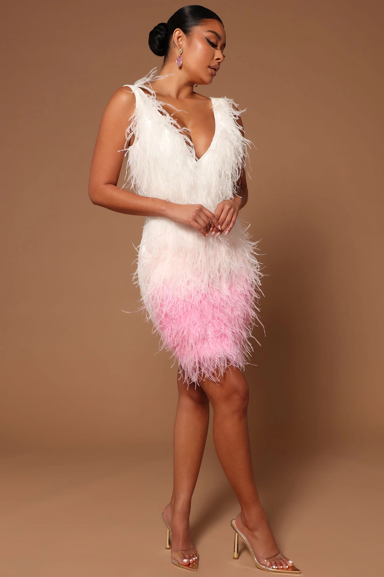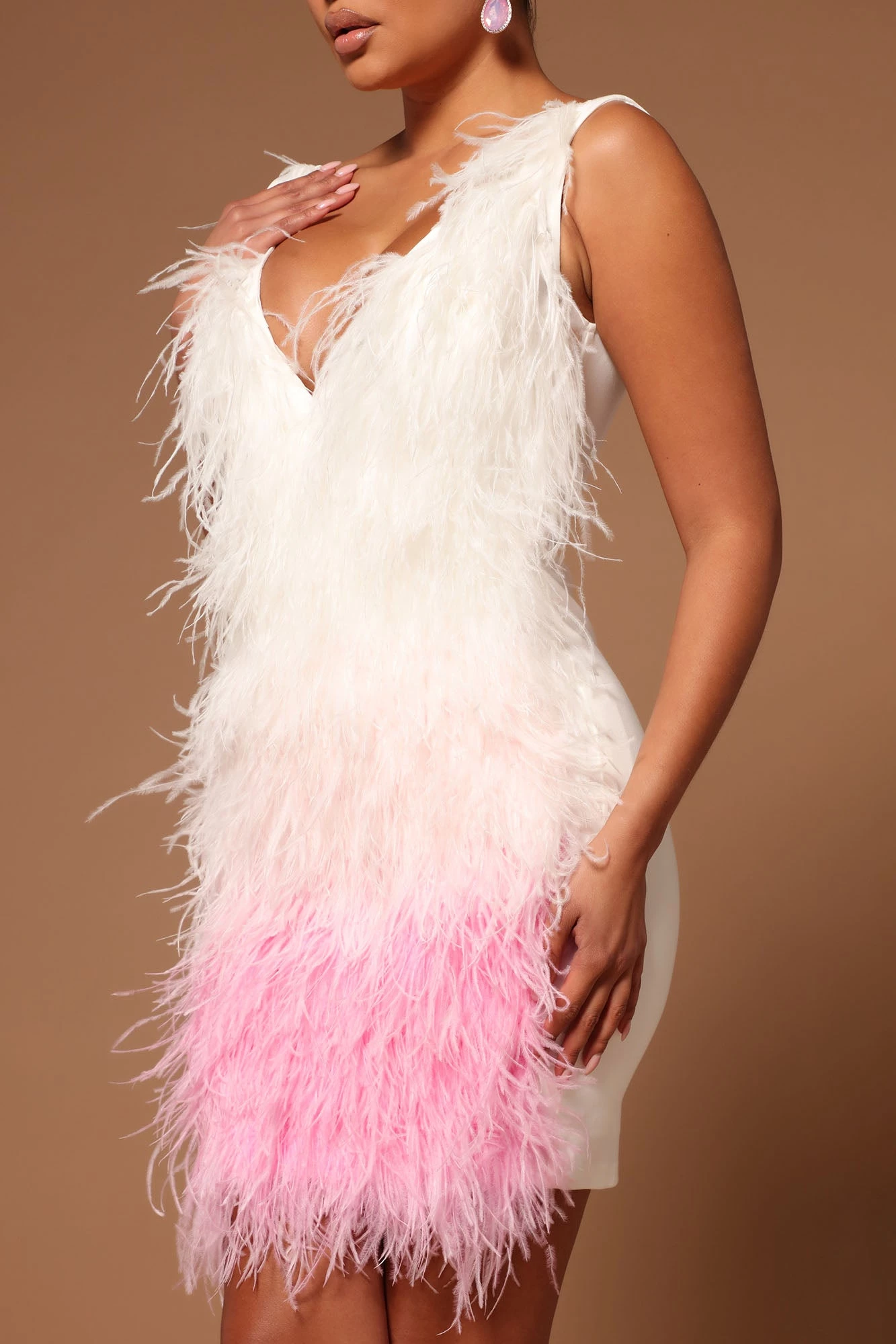 Fashion Nova Jackie Feather Mini Dress – White/Pink