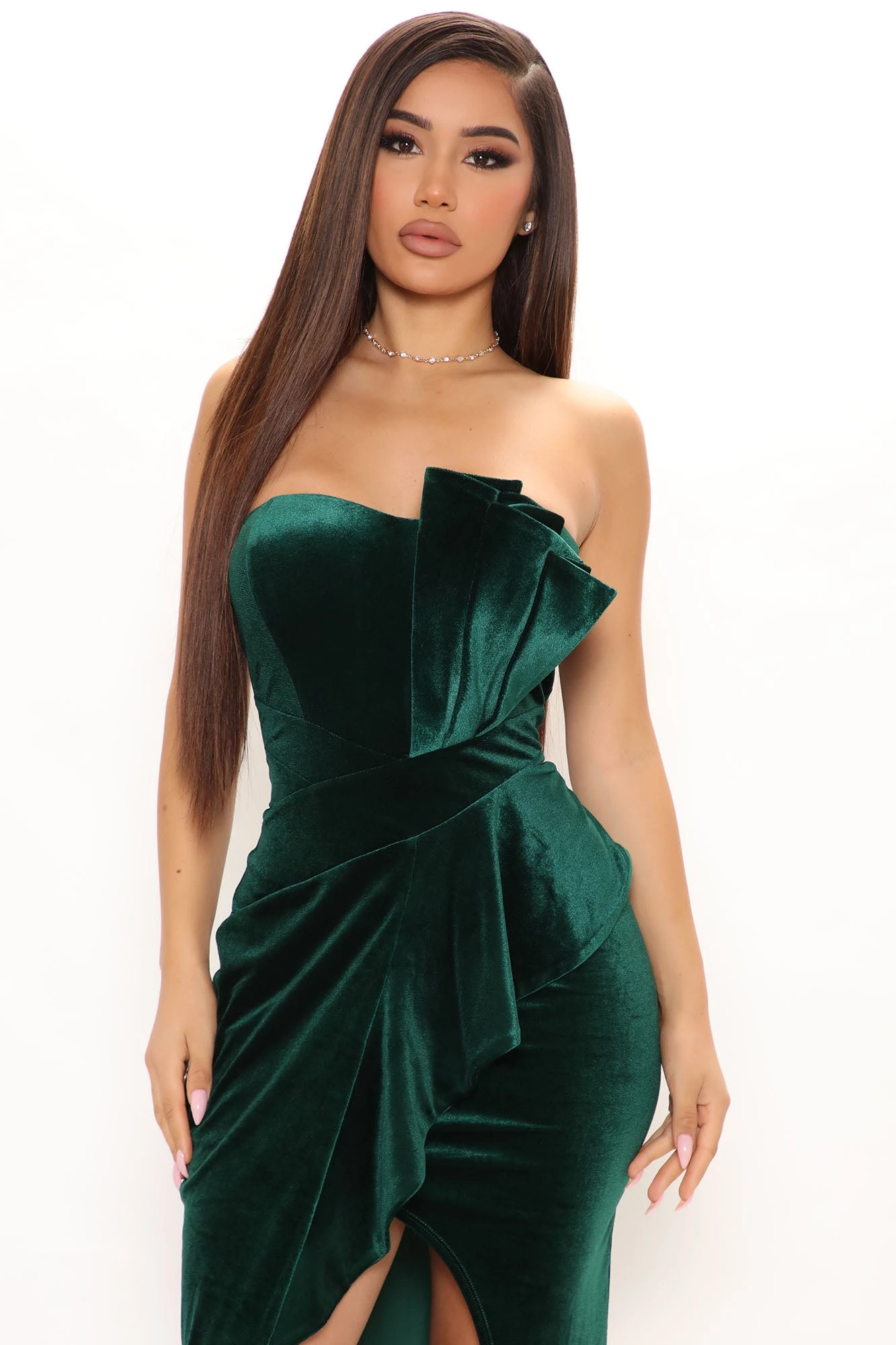 Fashion Nova J’adore You Velvet Maxi Dress – Hunter