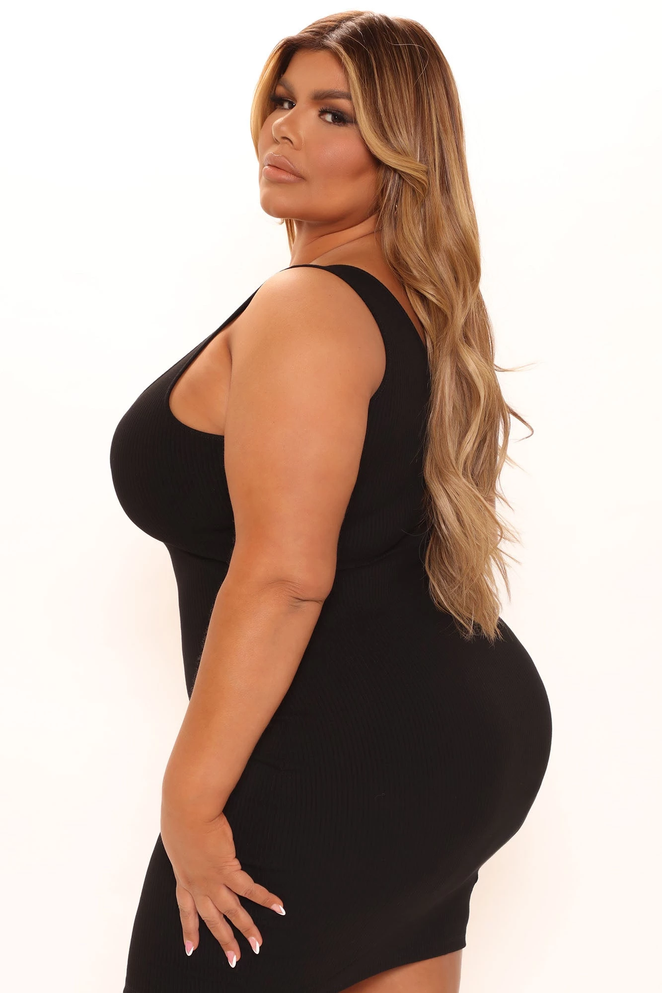 Fashion Nova Jane Heavy Rib Mini Dress – Black