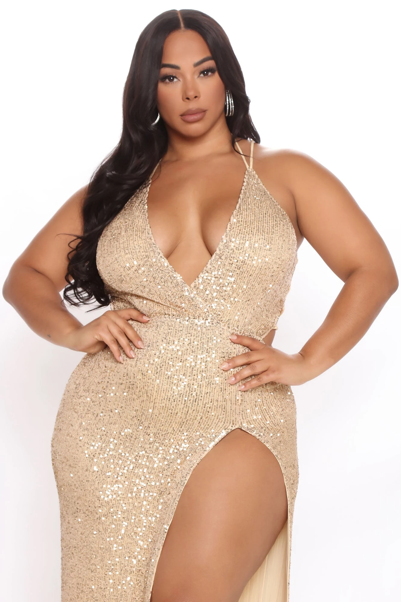 Fashion Nova Jaw Dropping Sequin Maxi Dress – Gold