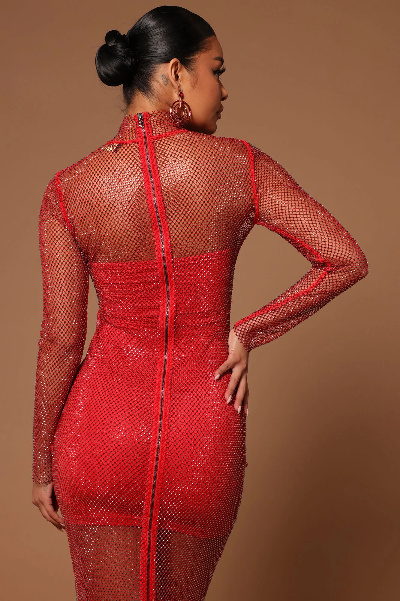 Fashion Nova Jessa Mesh Maxi Dress – Red
