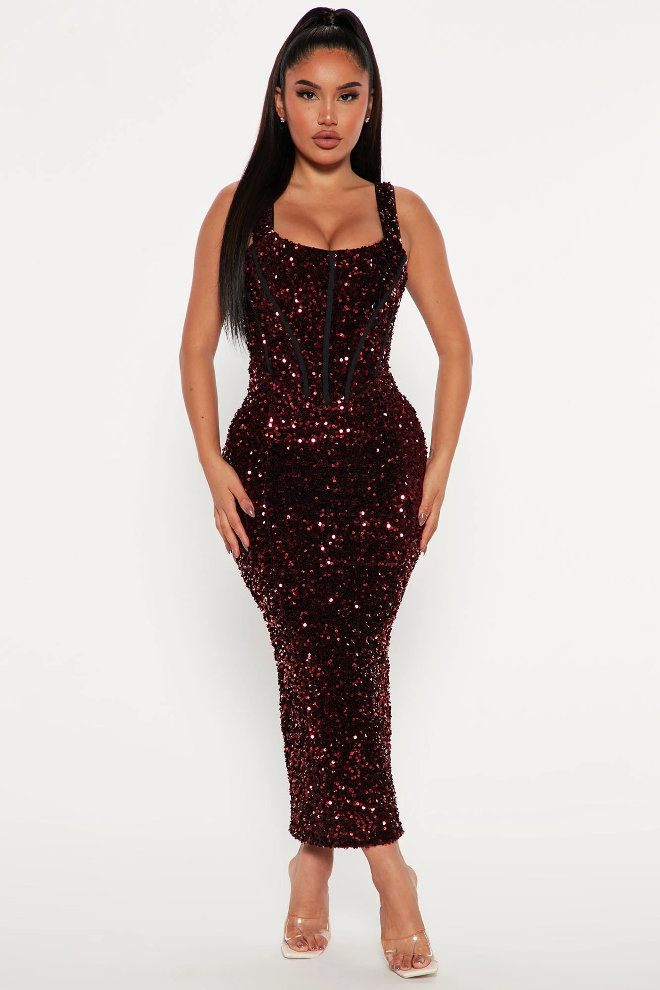Fashion Nova Jocelyn Sequin Midi Dress – Burgundy