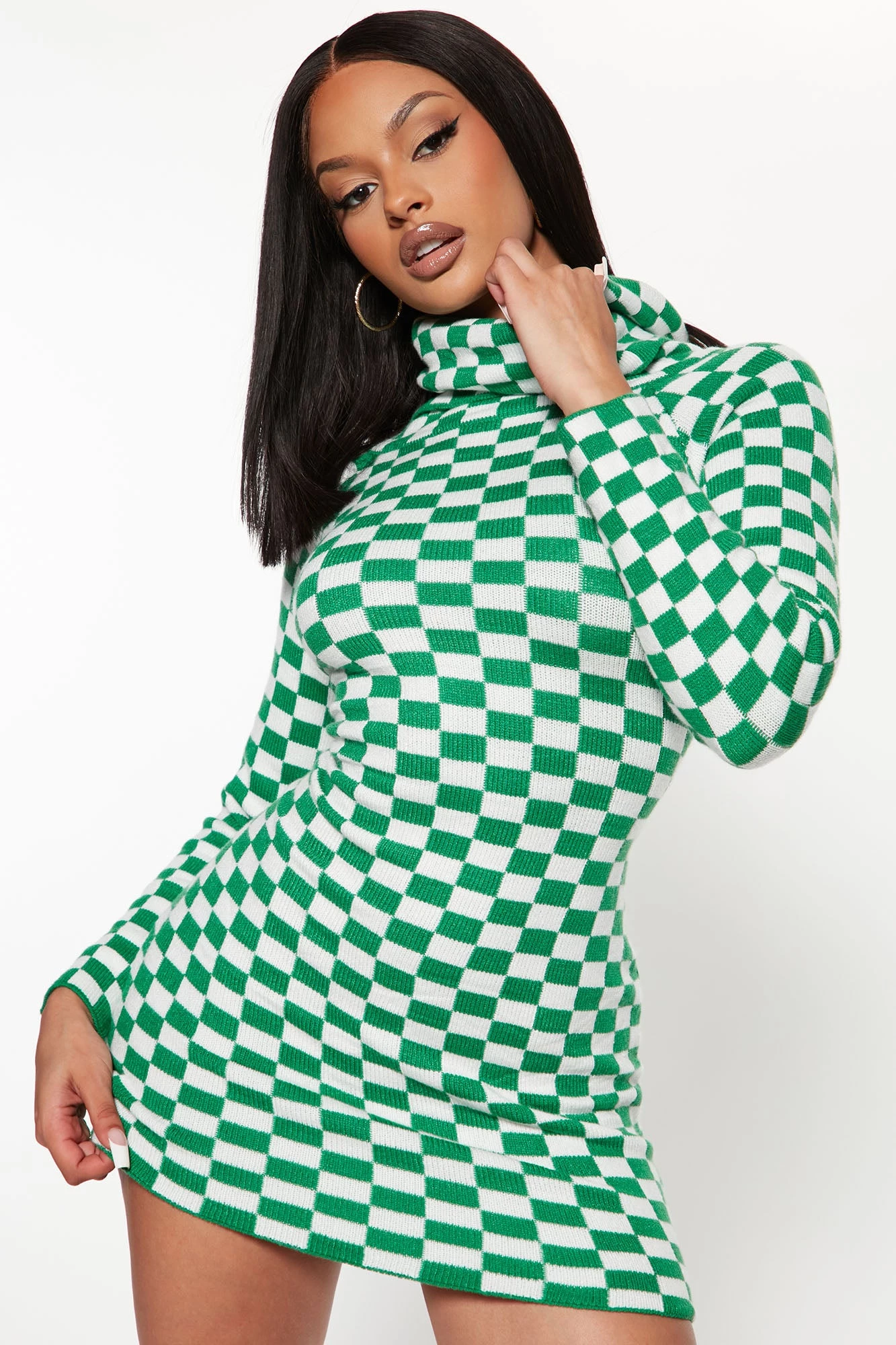 Fashion Nova Kamari Sweater Mini Dress – Green/combo