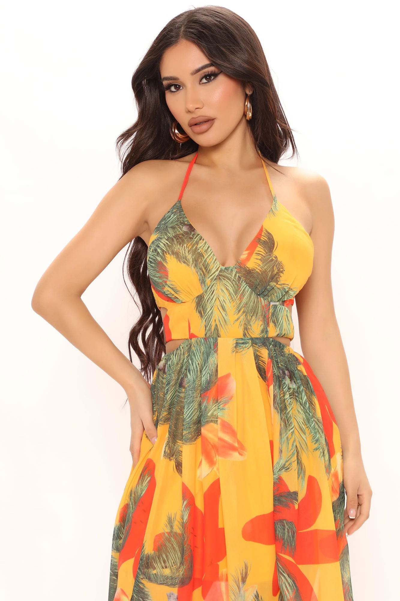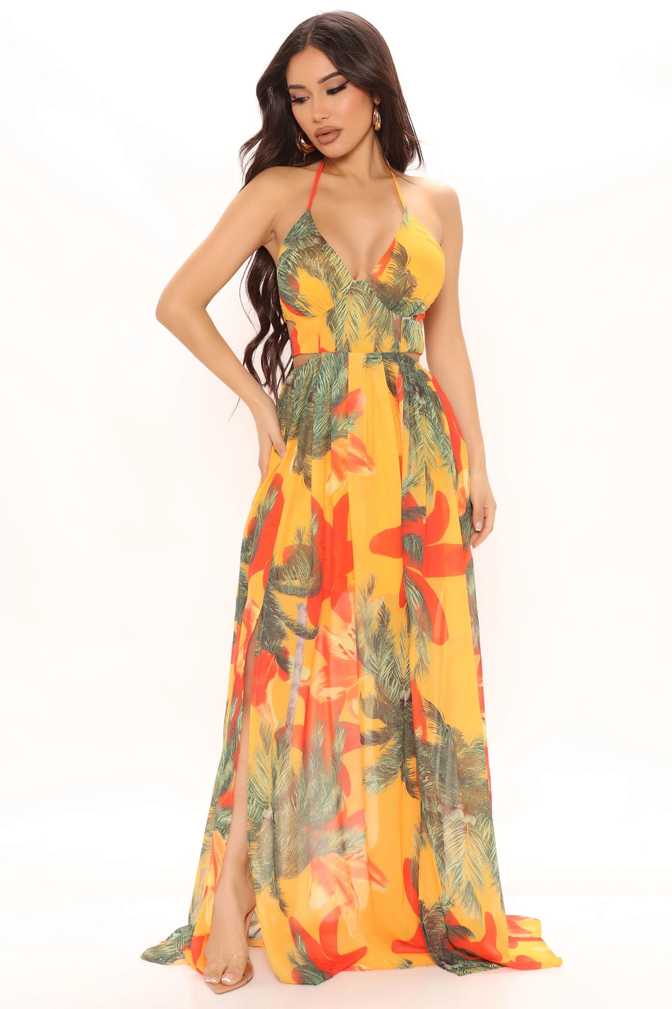 Fashion Nova Kenz Halter Maxi Dress – Orange/combo