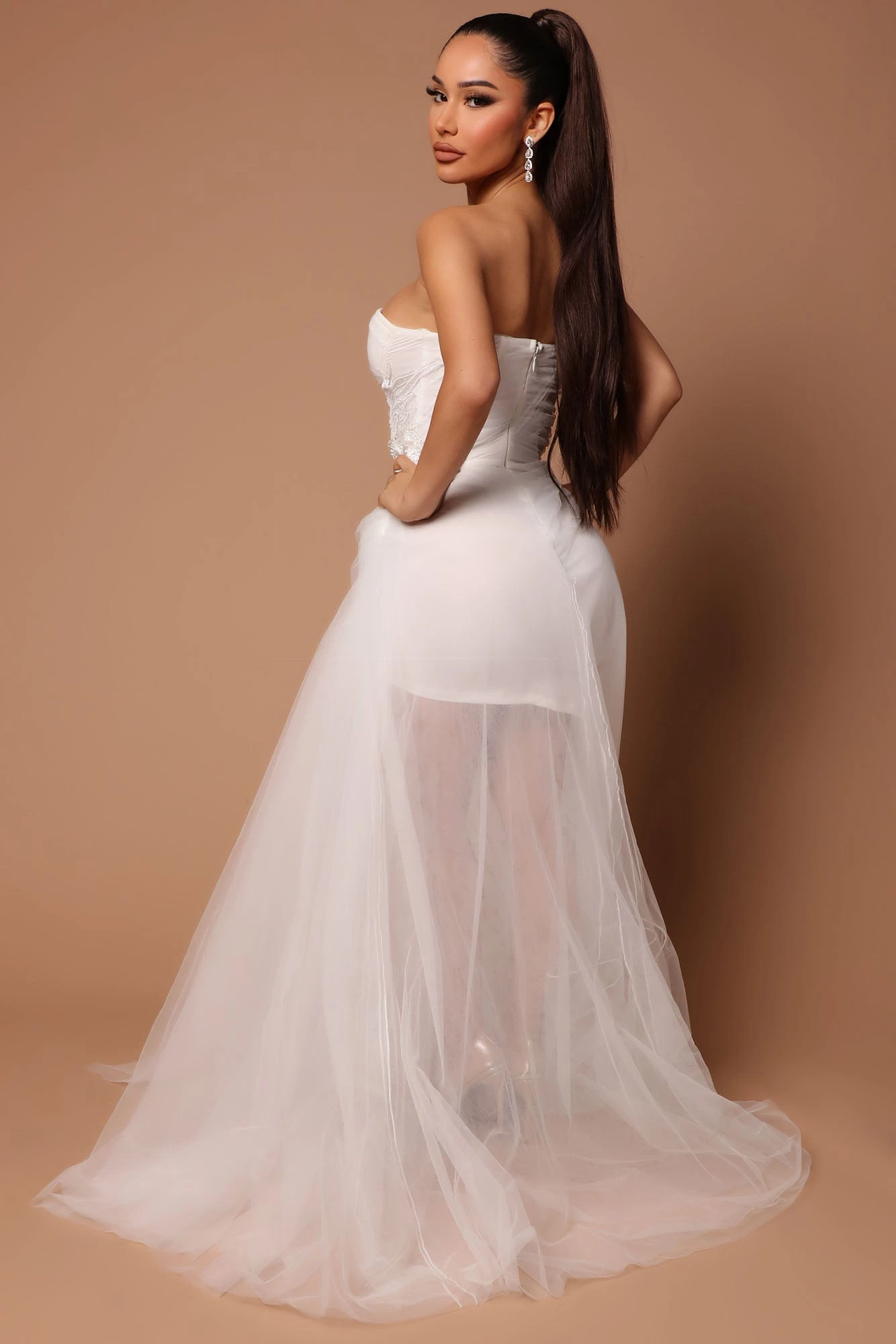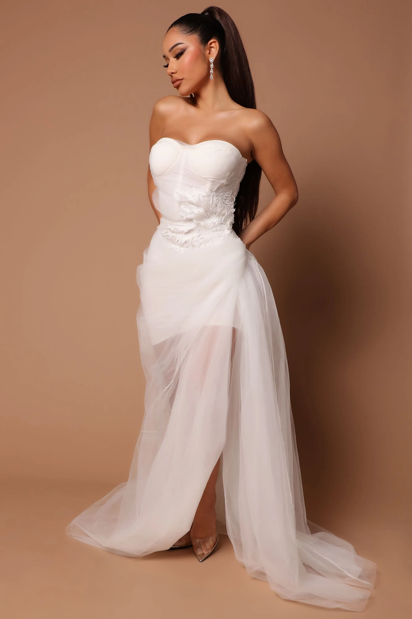 Fashion Nova Kiara Embellished Tulle Maxi Dress – White