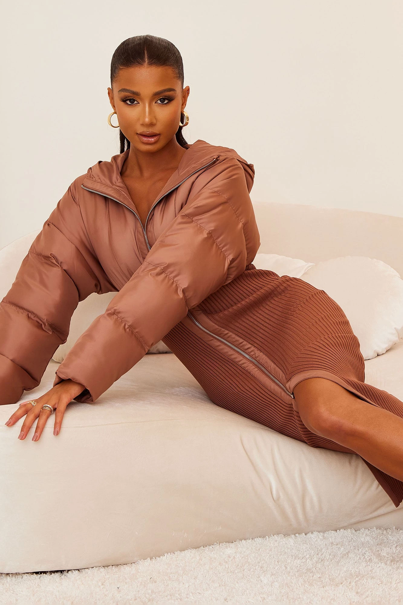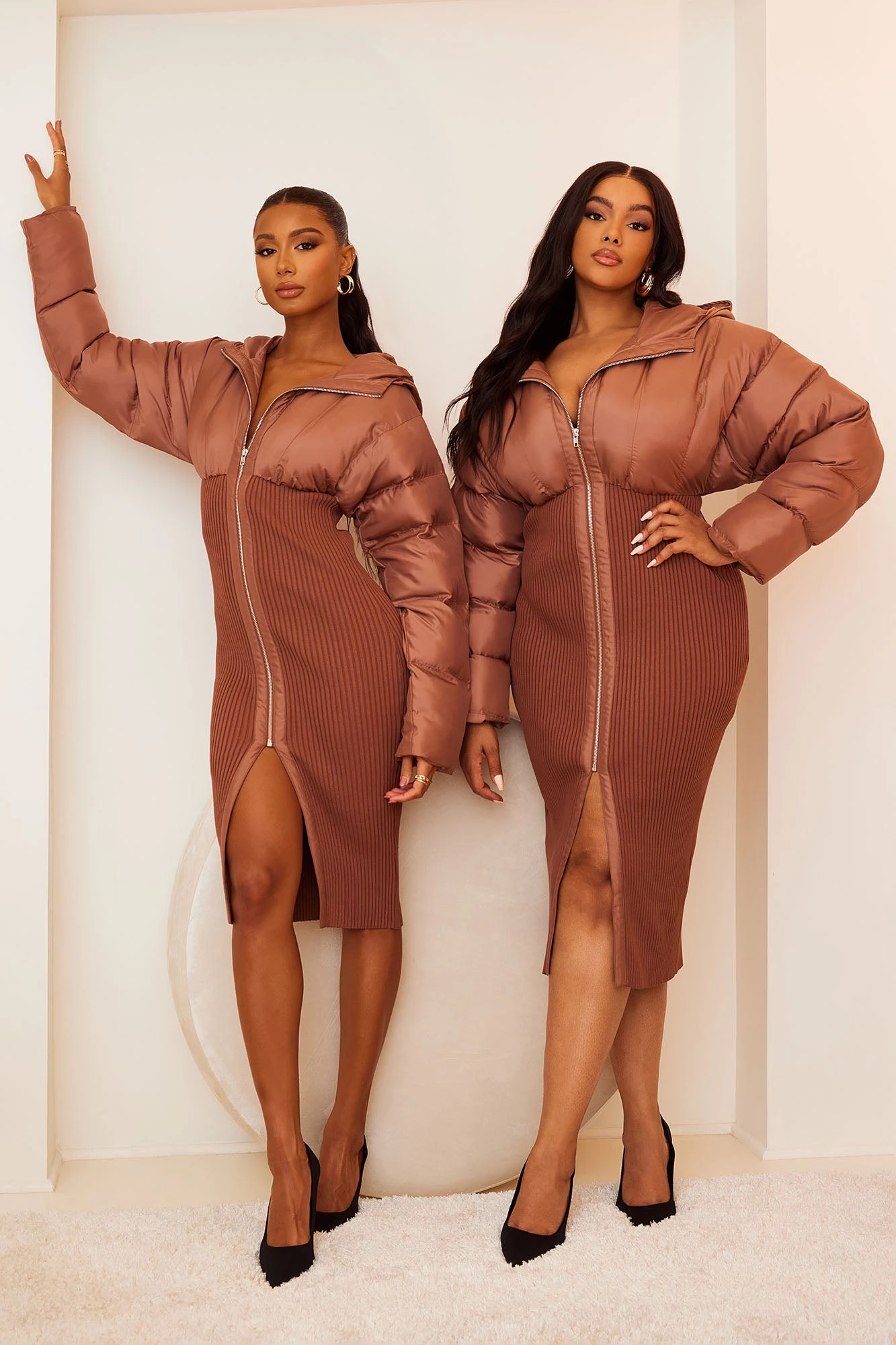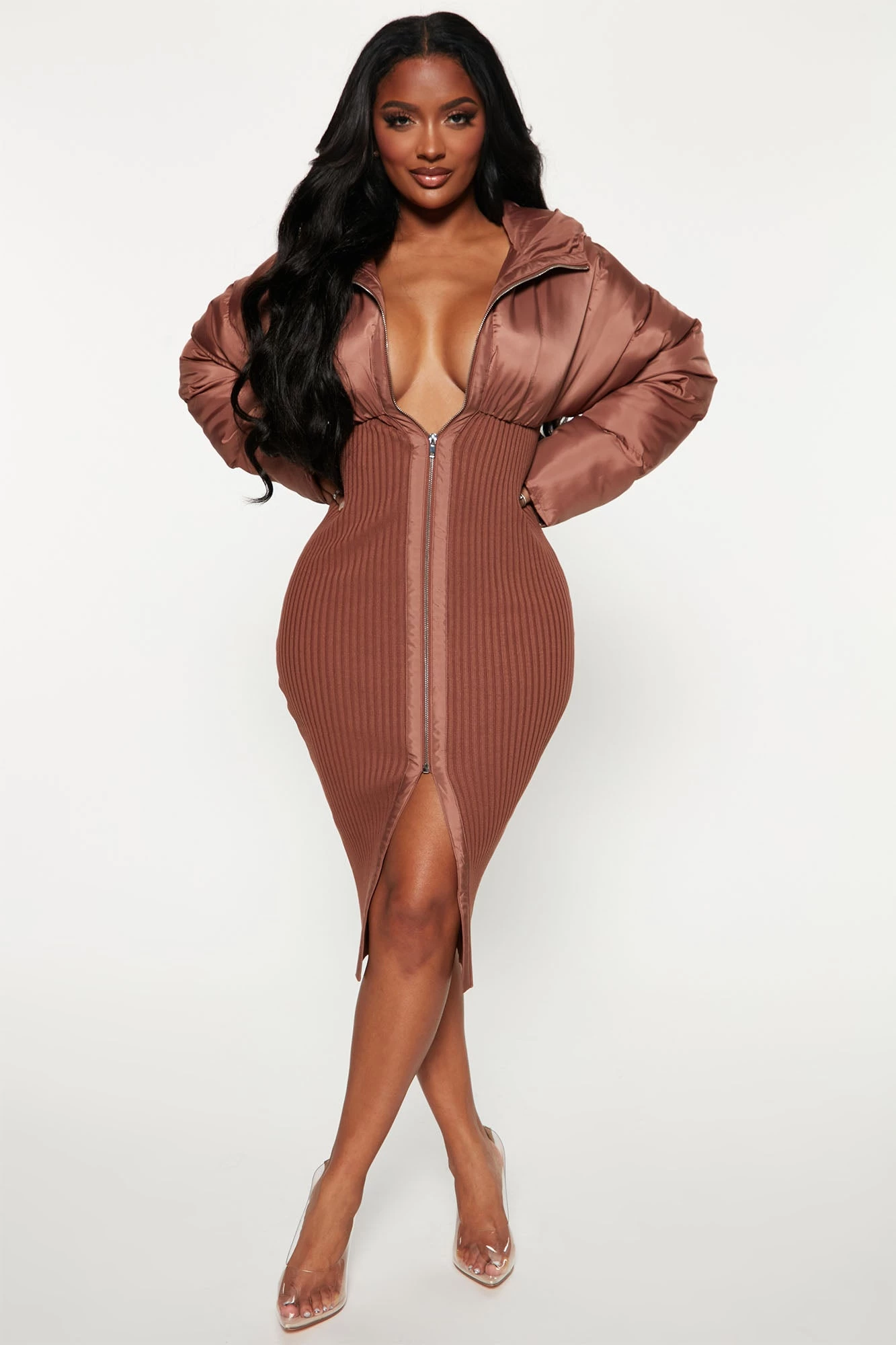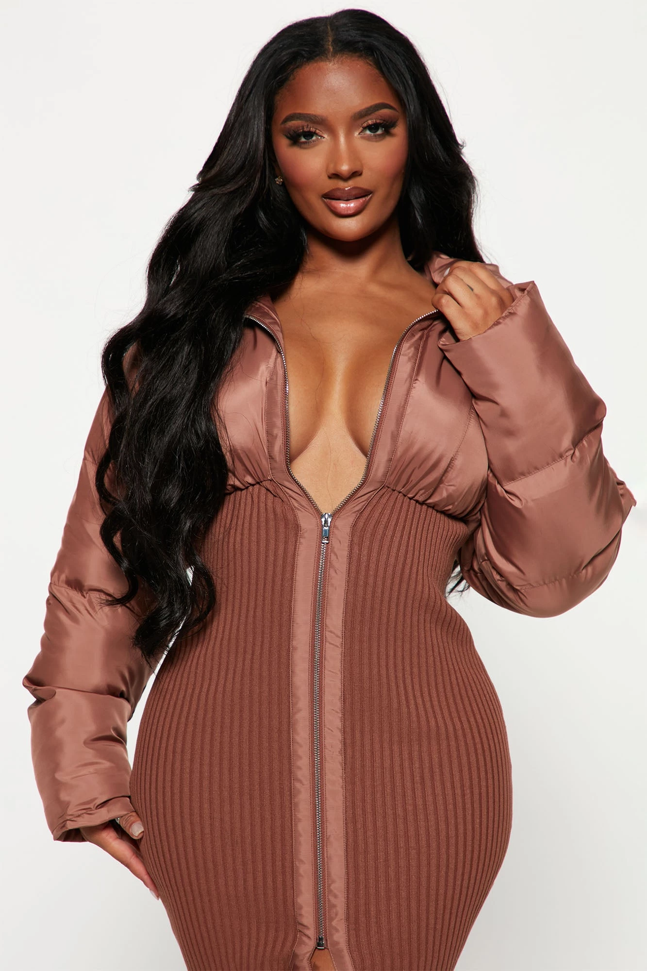 Fashion Nova Kim Puffer Midi Dress – Mocha