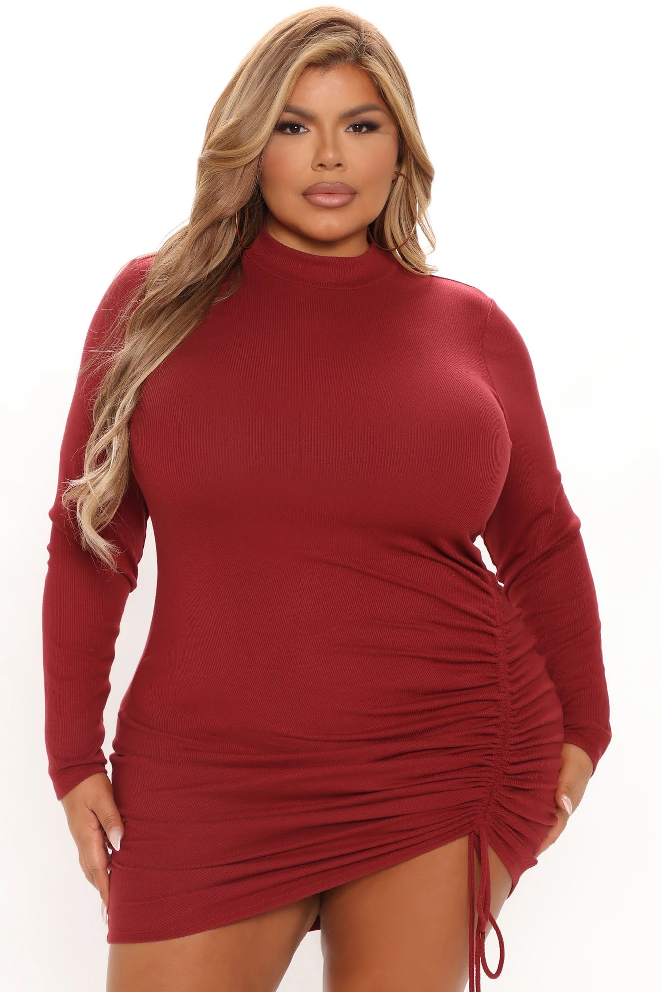 Fashion Nova Krissy Ruched Mini Dress – Burgundy