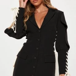 Fashion Nova Laced In Fashion Blazer Mini Dress – Black