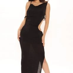 Fashion Nova Late Nights Slinky Maxi Dress – Black