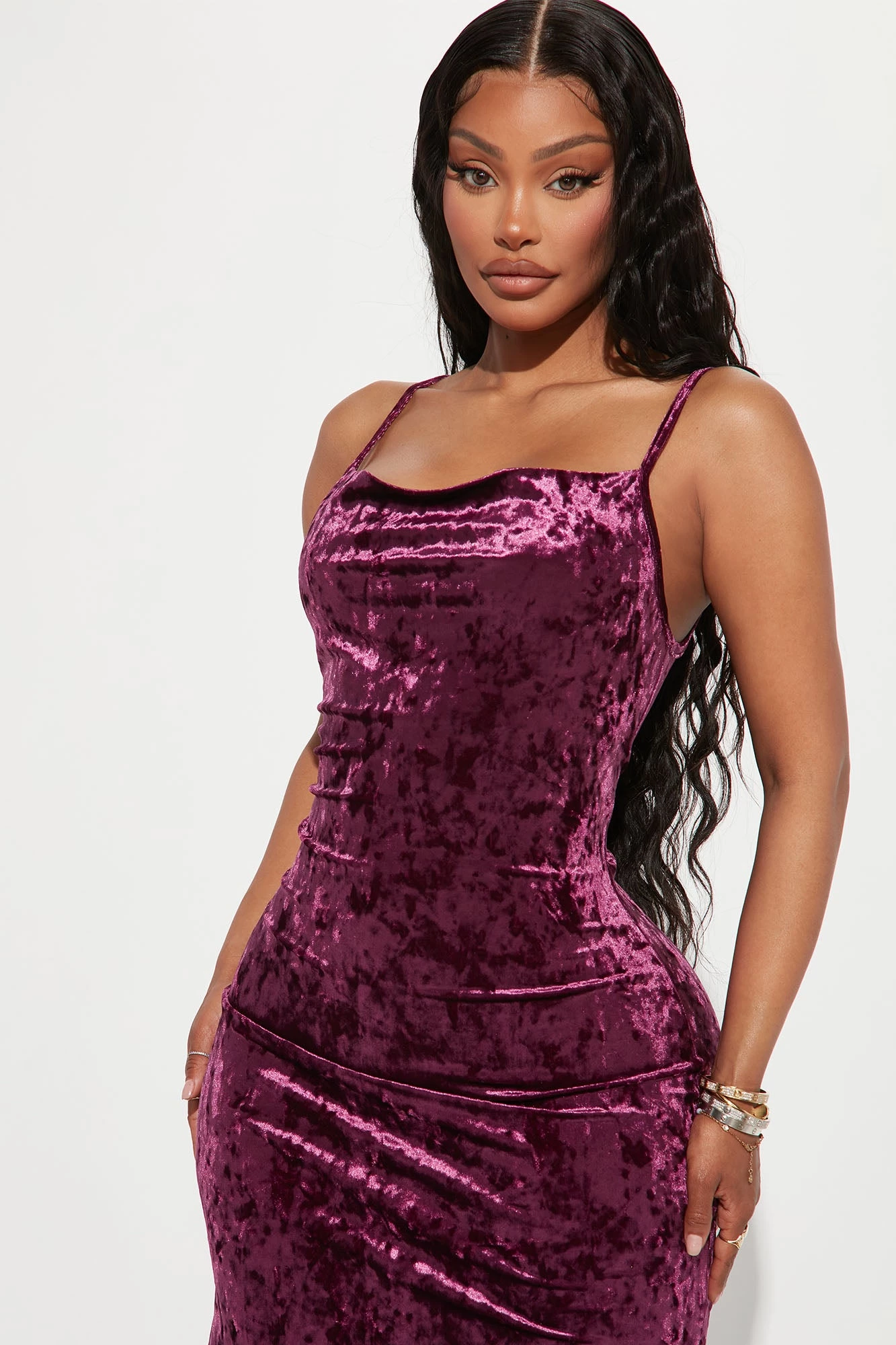 Fashion Nova Layla Velvet Midi Dress – Purple