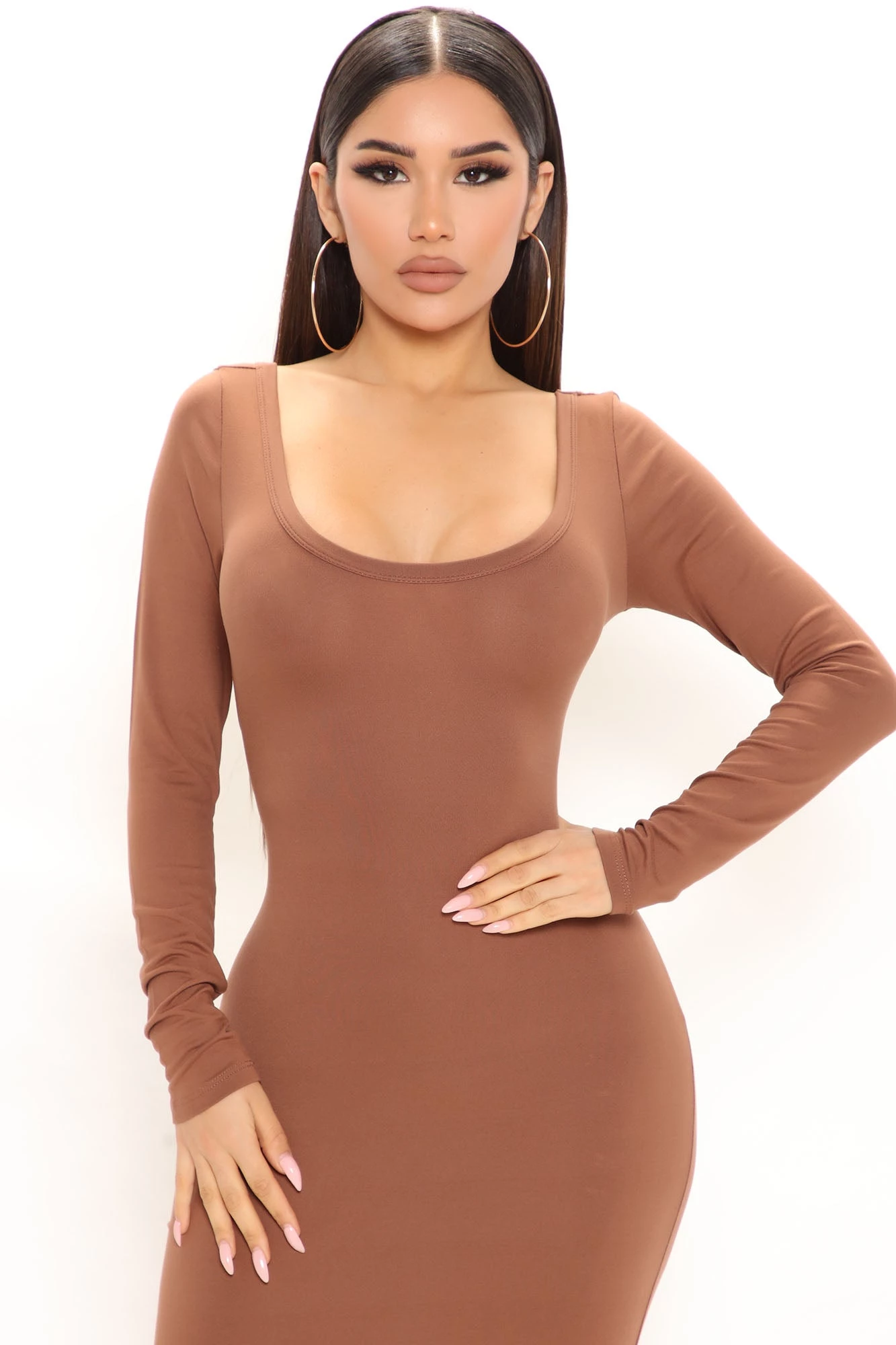 SKU: 6536235548796 Category: Midi Dresses Tags: casualdresses, color:Brown, ColorFam-Brown, Dresses, Essentials, july4, length:Midi, Long Sleeve, Midi