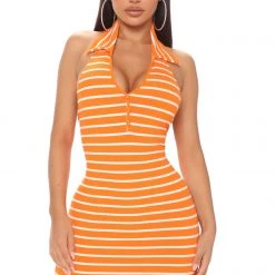 Fashion Nova Let’s Vibe Striped Mini Dress – Orange