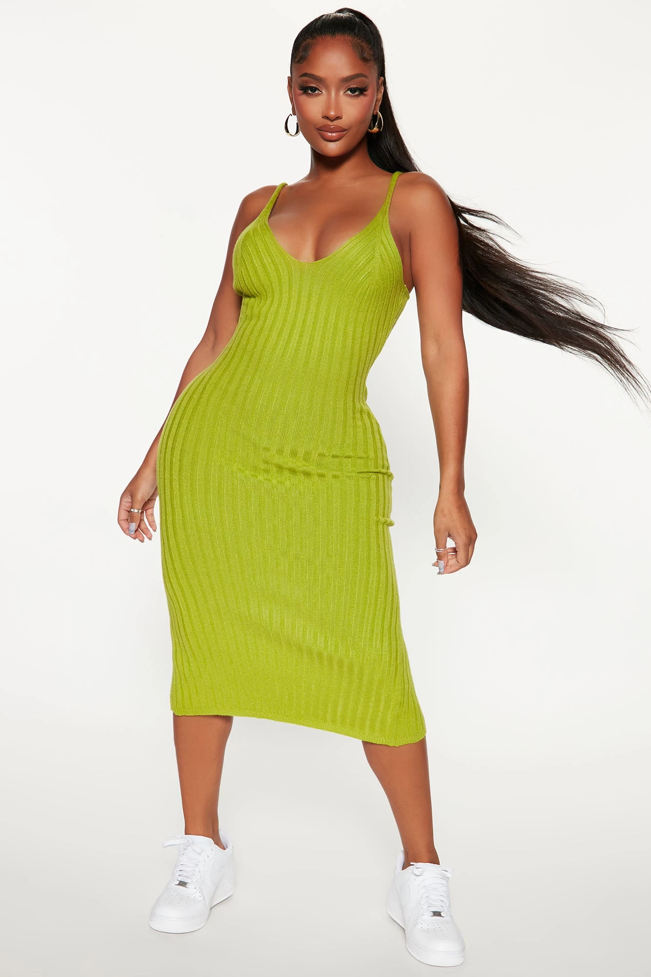 Fashion Nova Litzel Sweater Midi Dress – Green