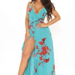 Fashion Nova Live For The Frill Maxi Dress – Teal/combo