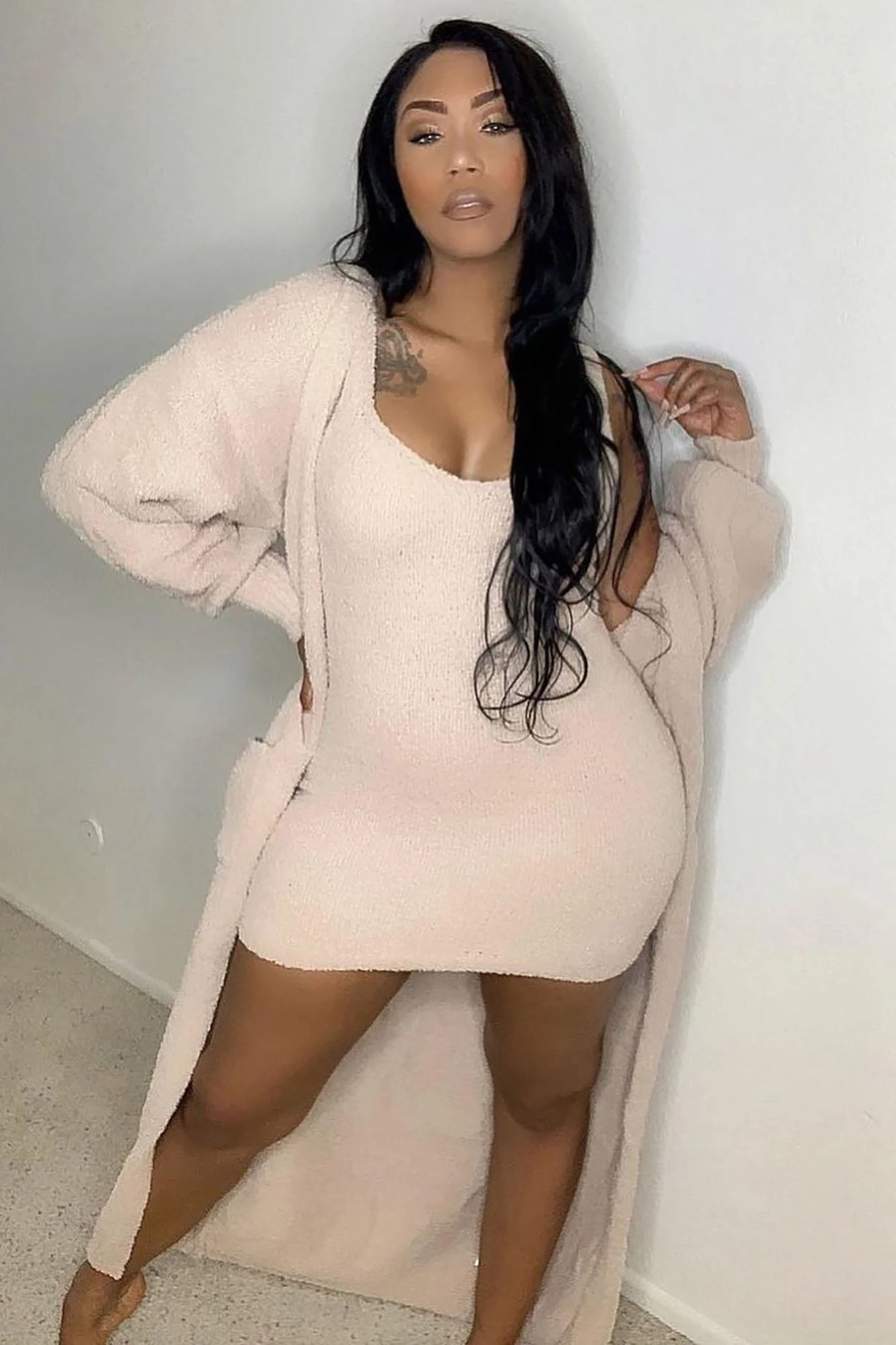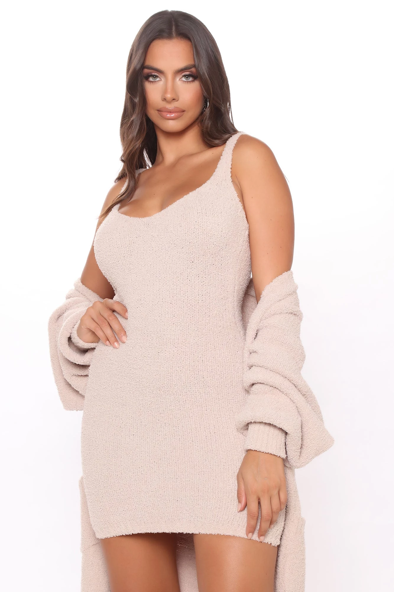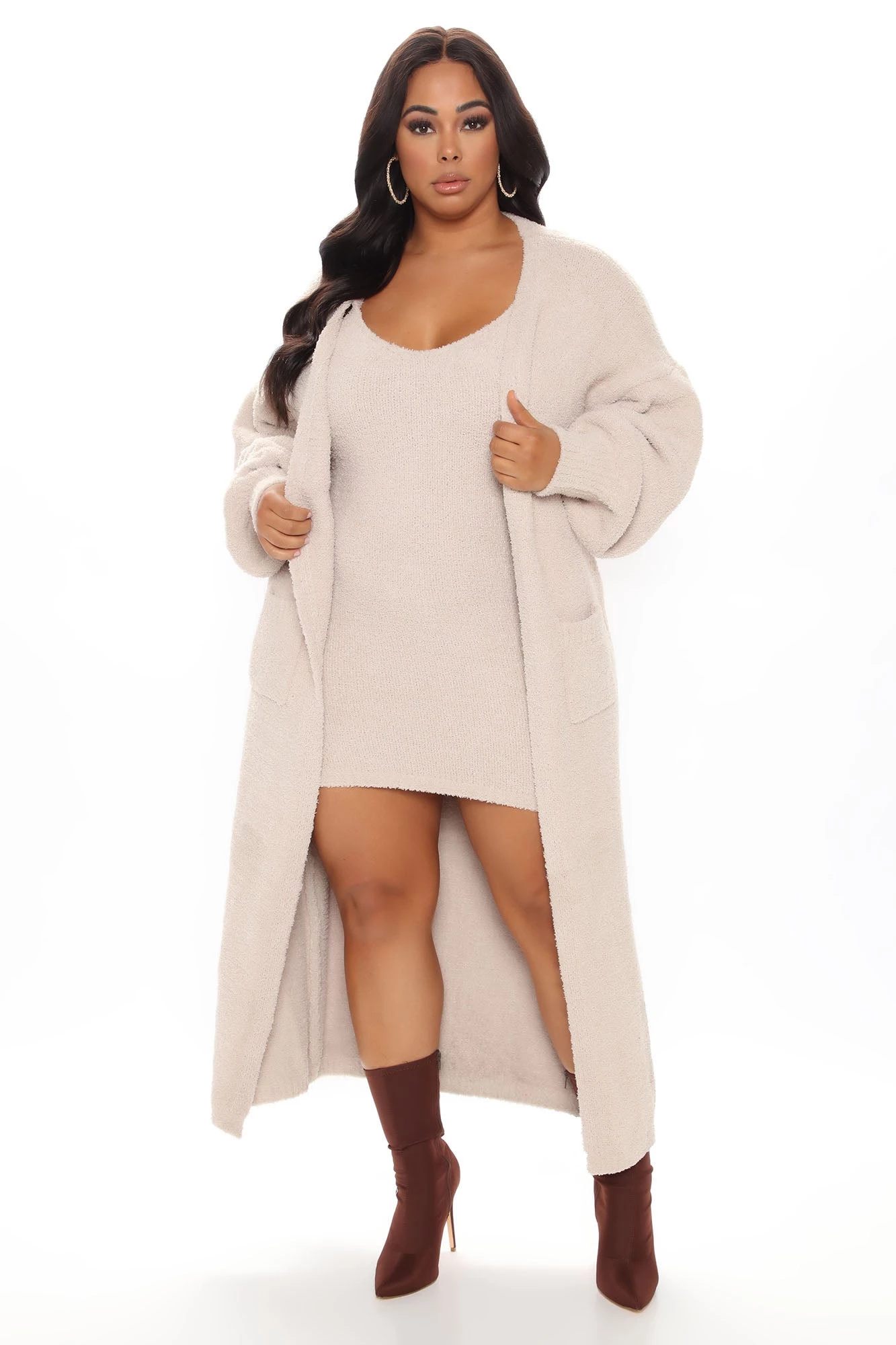 Fashion Nova Living In It Cozy Dress Set – Taupe