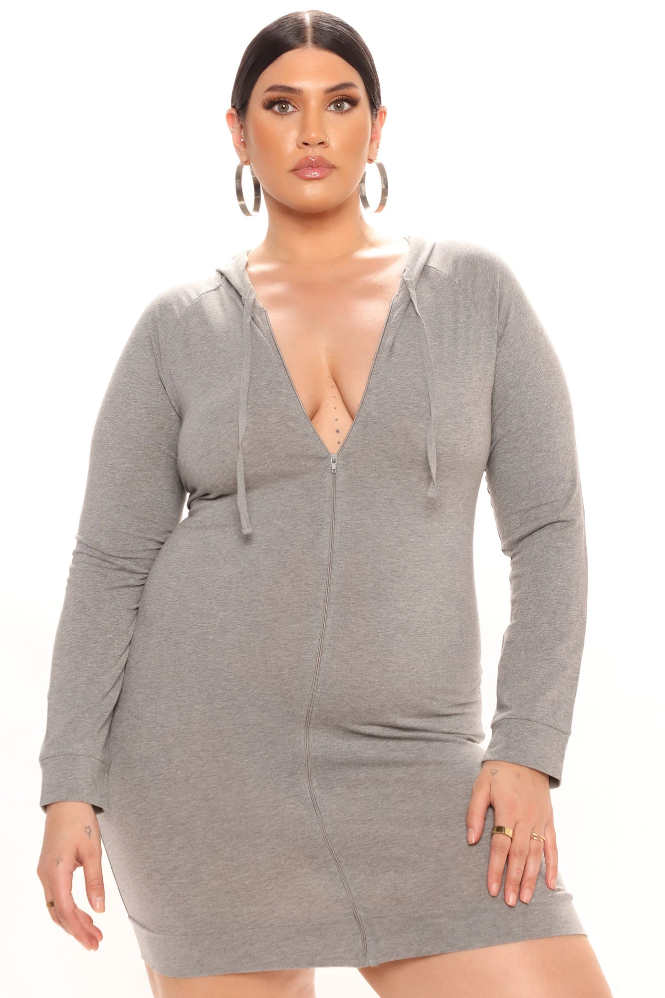 Fashion Nova Look At Me Hooded Mini Dress – Grey