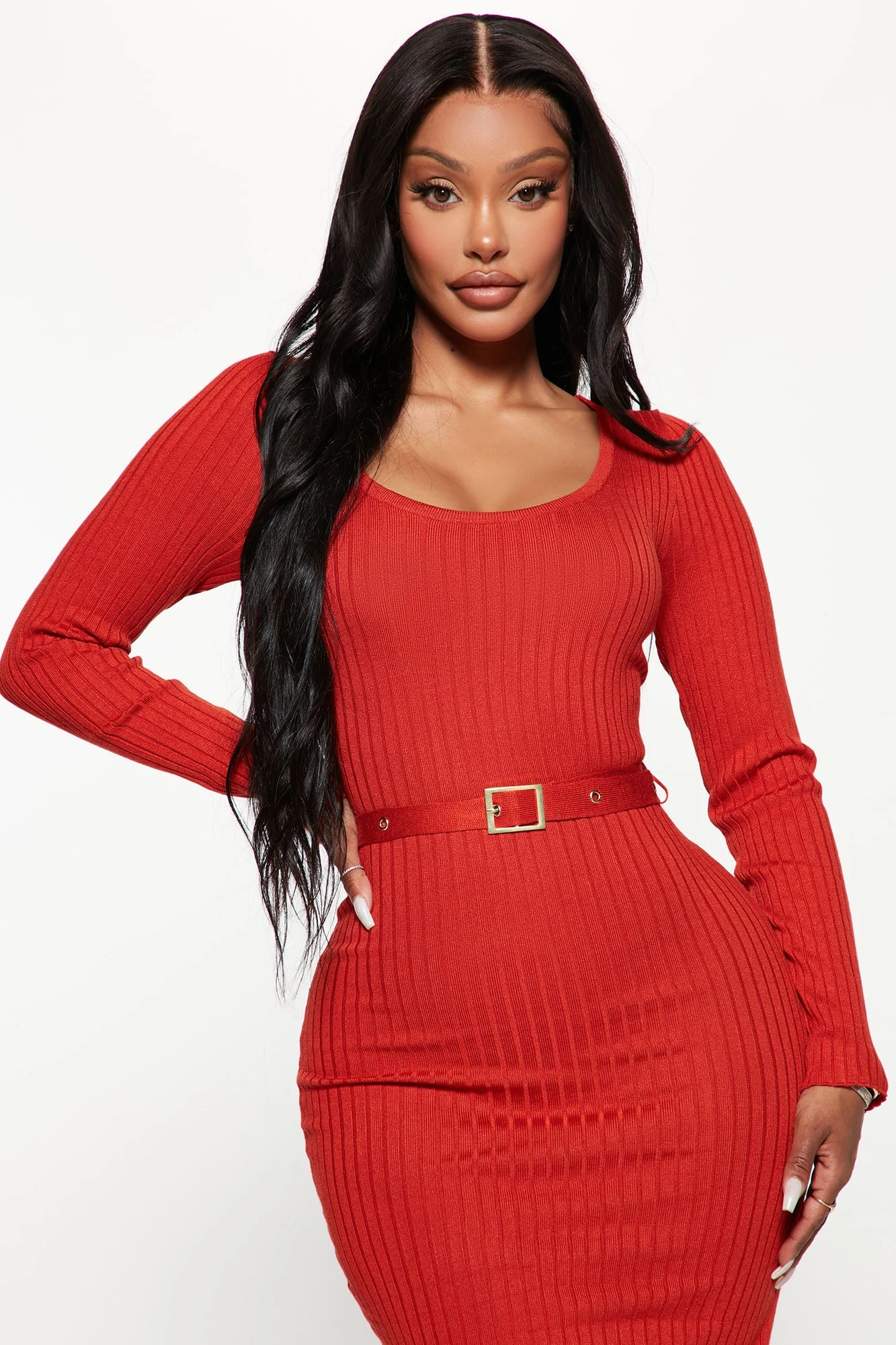 Fashion Nova Loop Me In Belted Sweater Dress – Rust