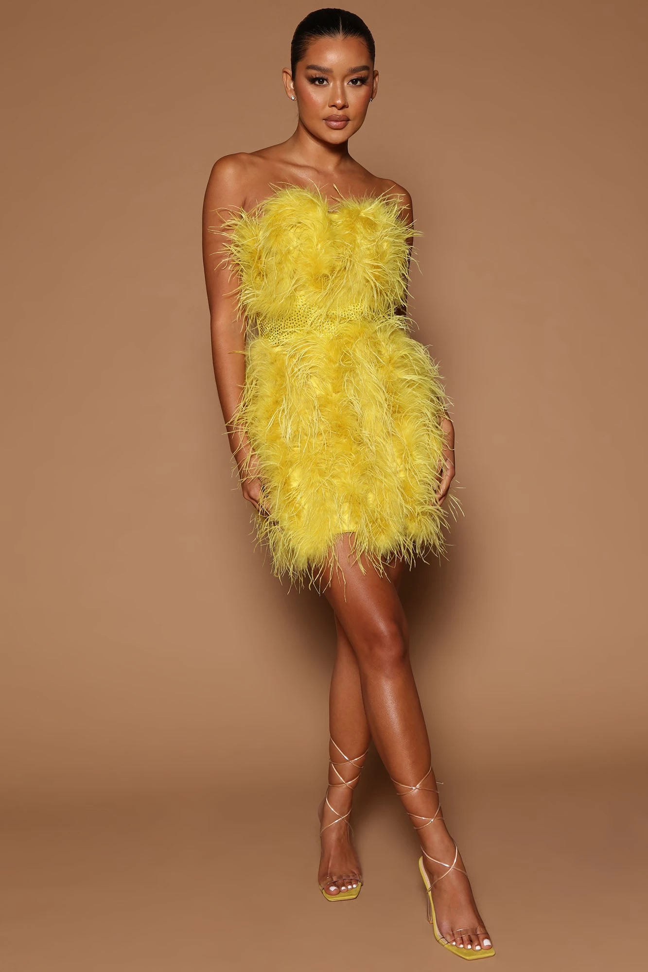 Fashion Nova Lorina Feather Mini Dress – Chartreuse