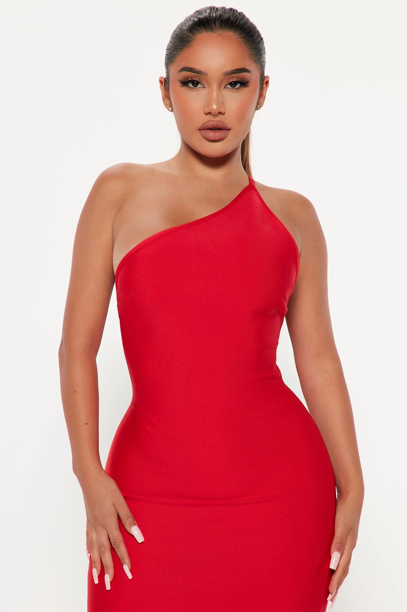 Fashion Nova Lucy Midi Bandage Dress – Red