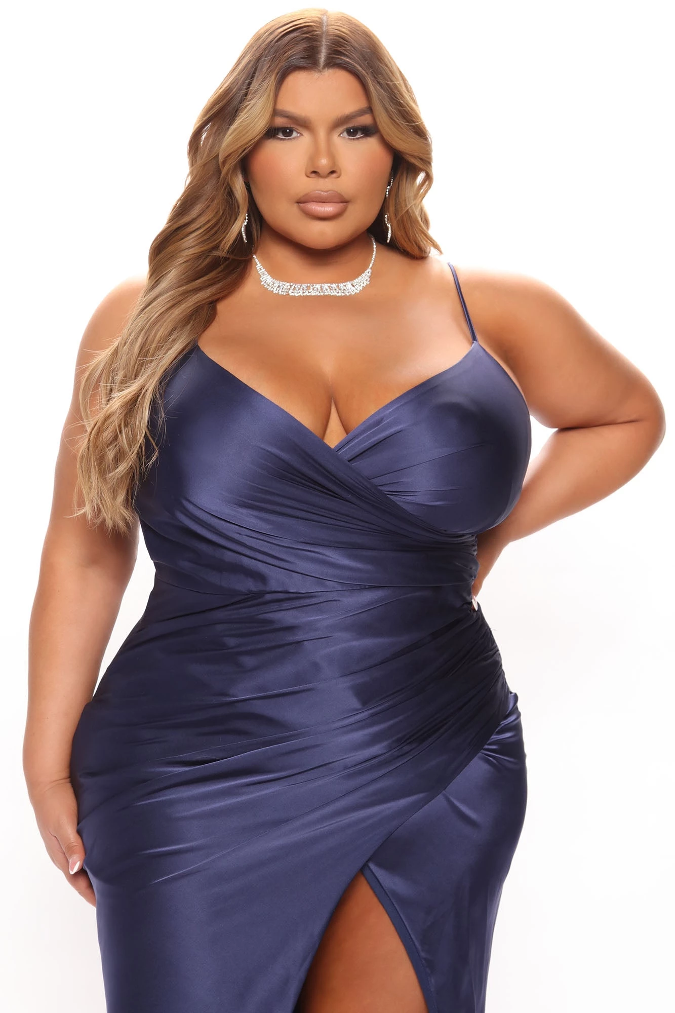 Fashion Nova Luxe Nights Satin Maxi Dress – Navy