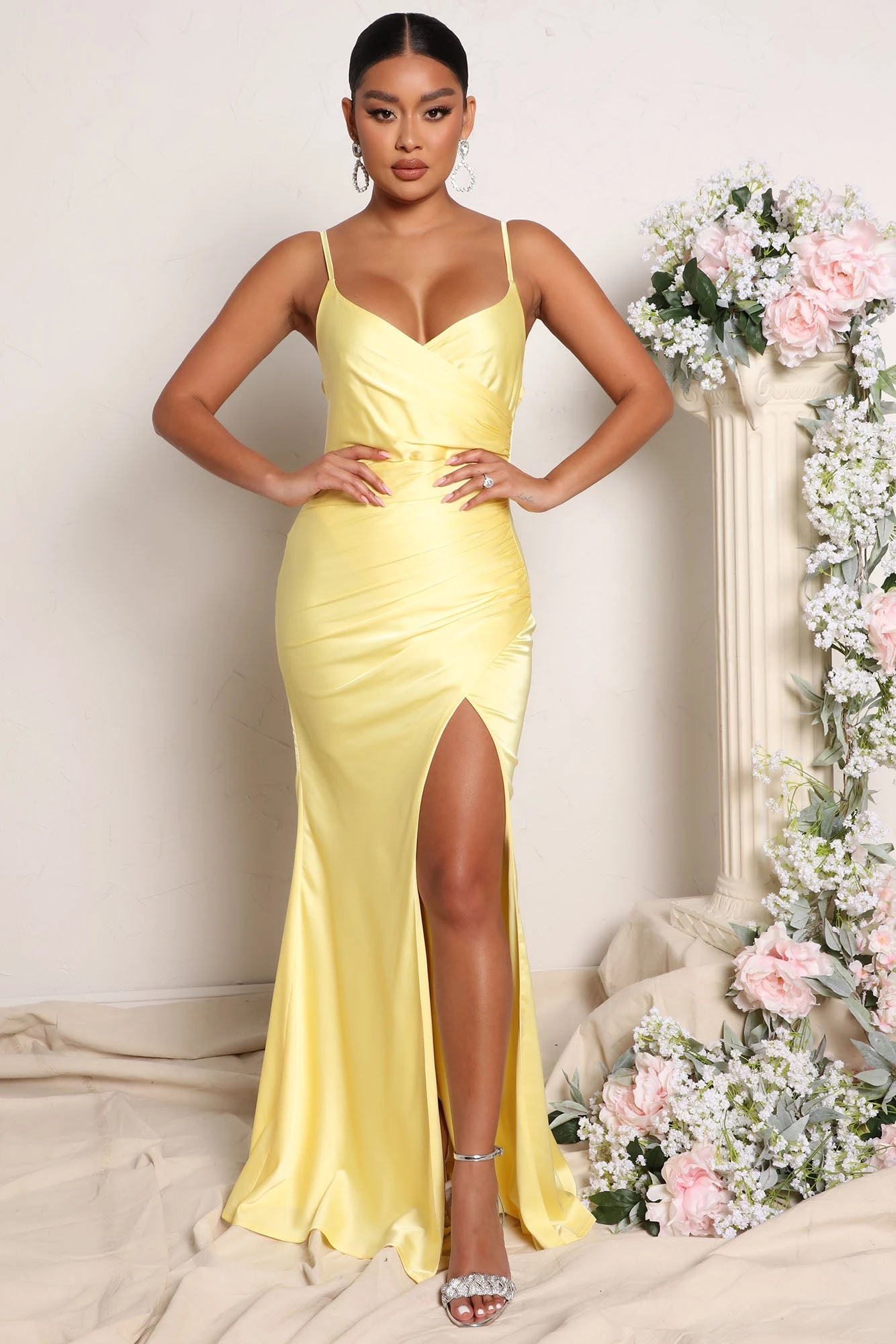 Fashion Nova Luxe Nights Satin Maxi Dress – Yellow