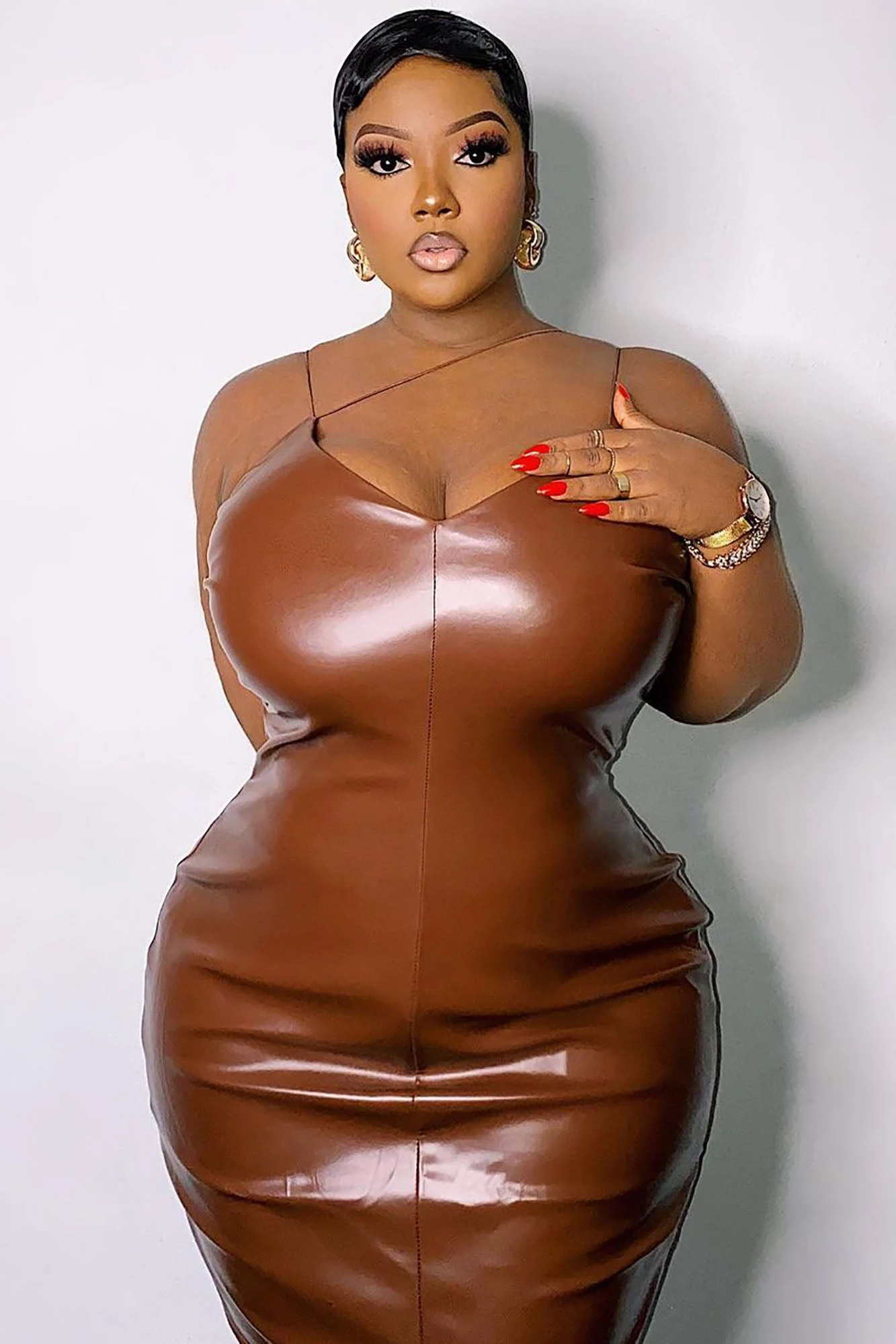 Fashion Nova Make It Sexy Faux Leather Midi Dress – Brown