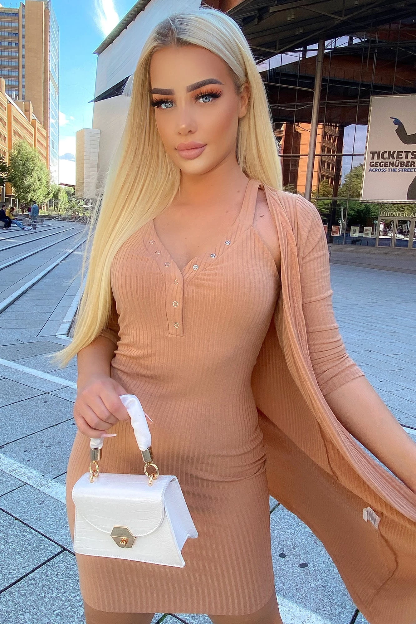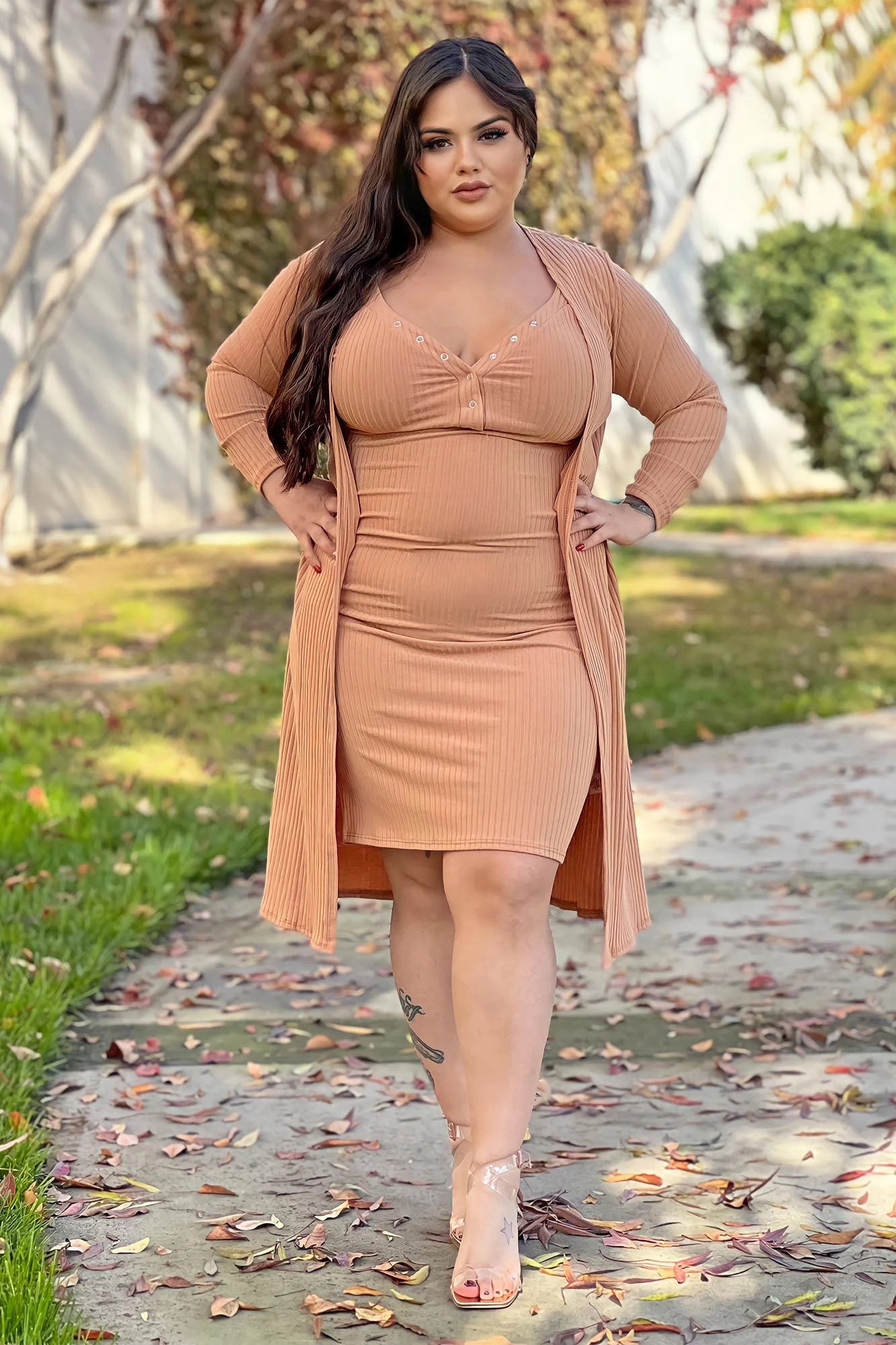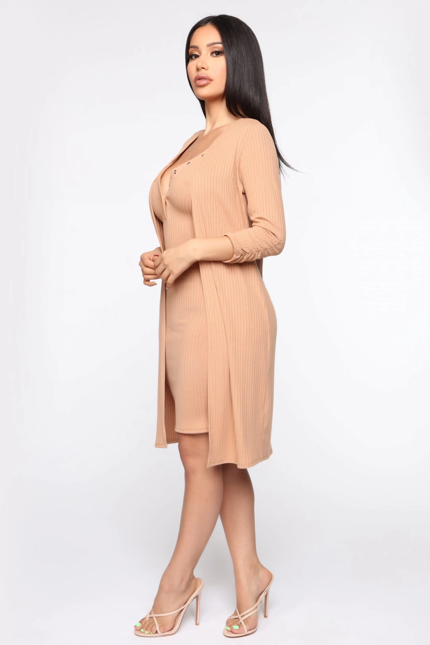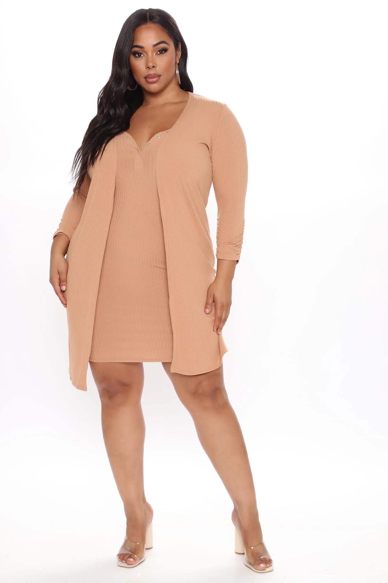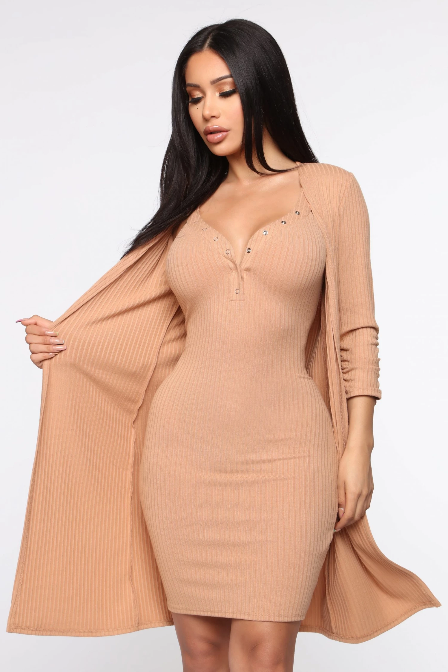Fashion Nova Malia Ribbed Dress Set – Taupe