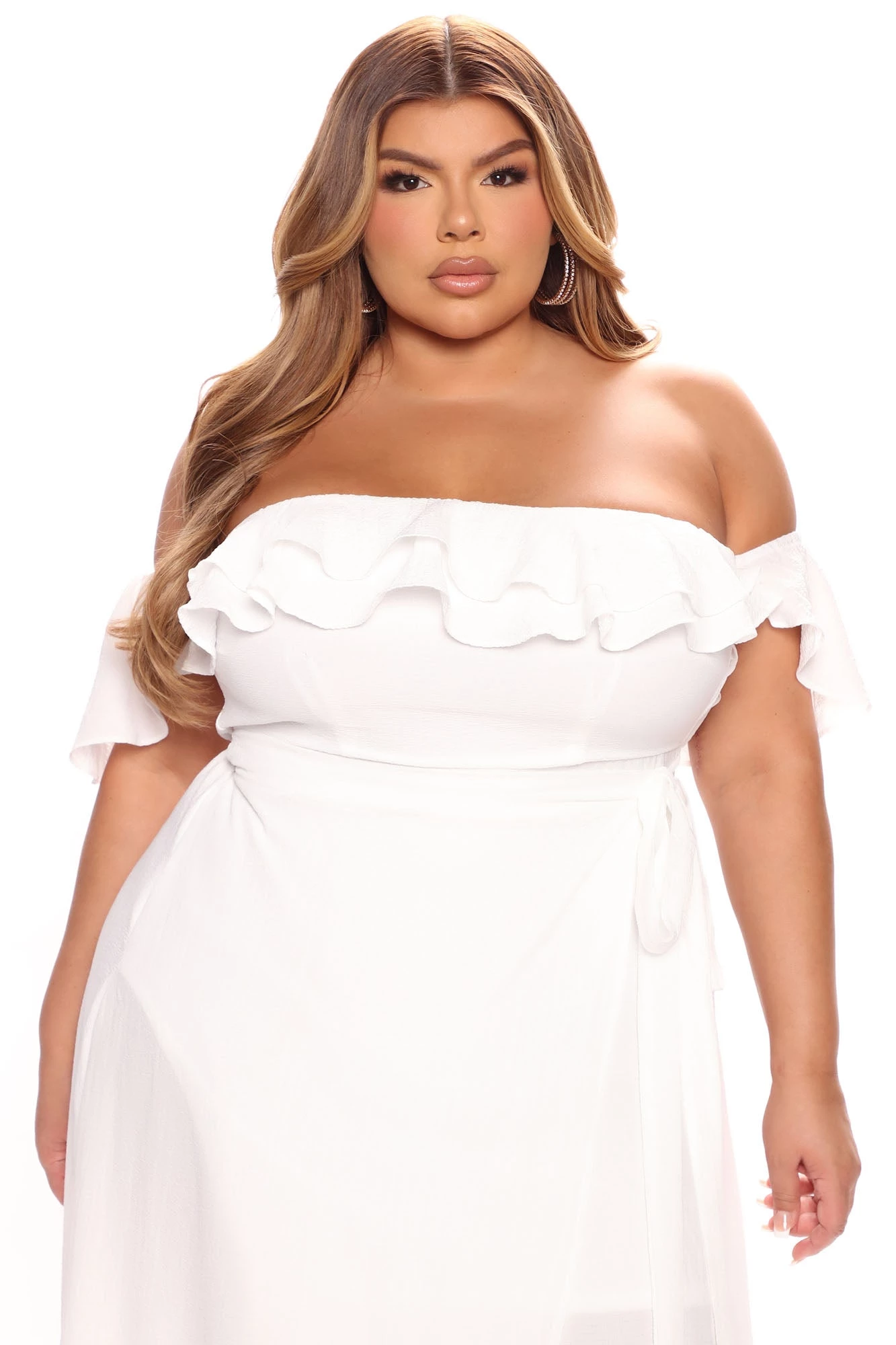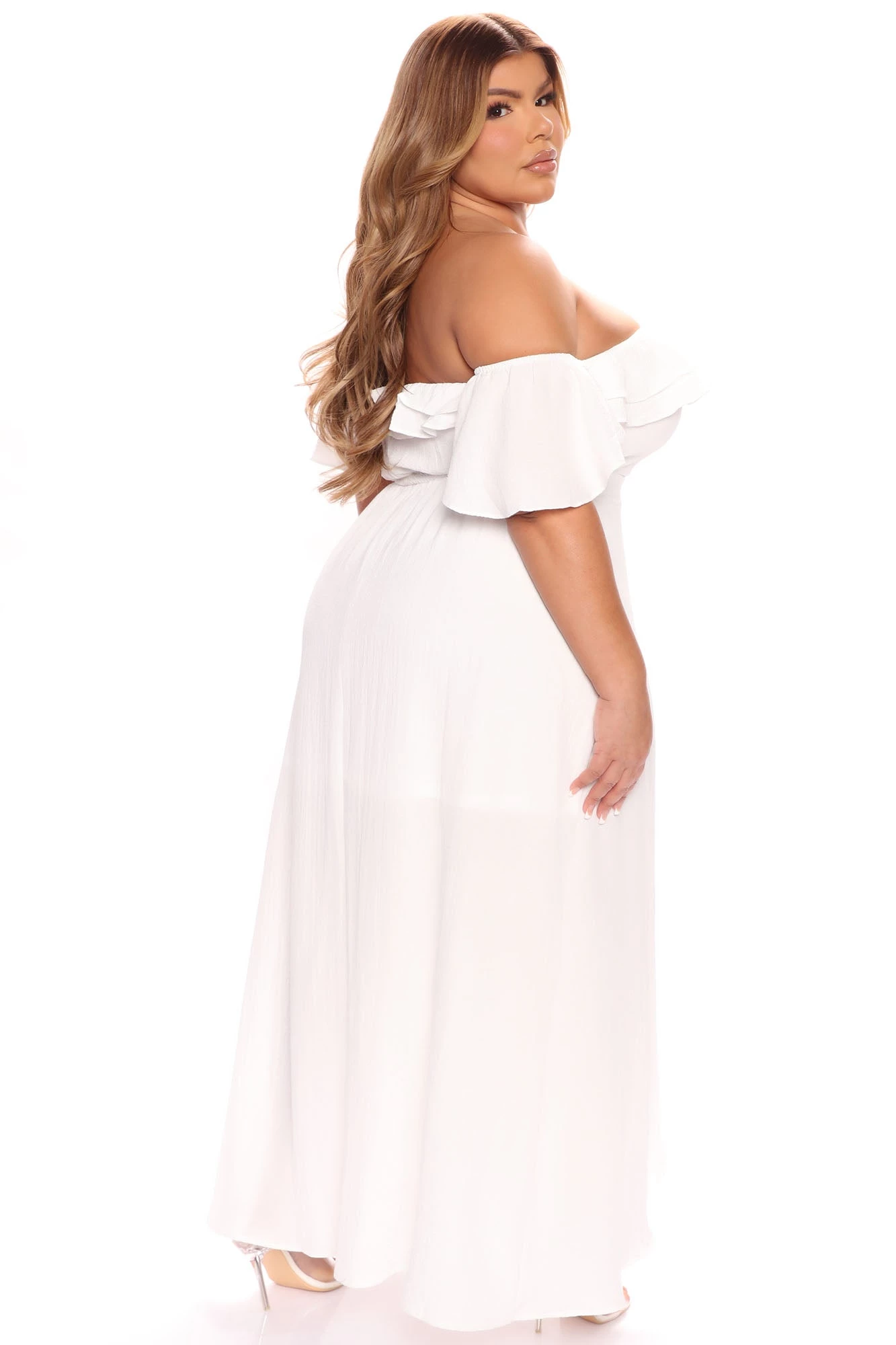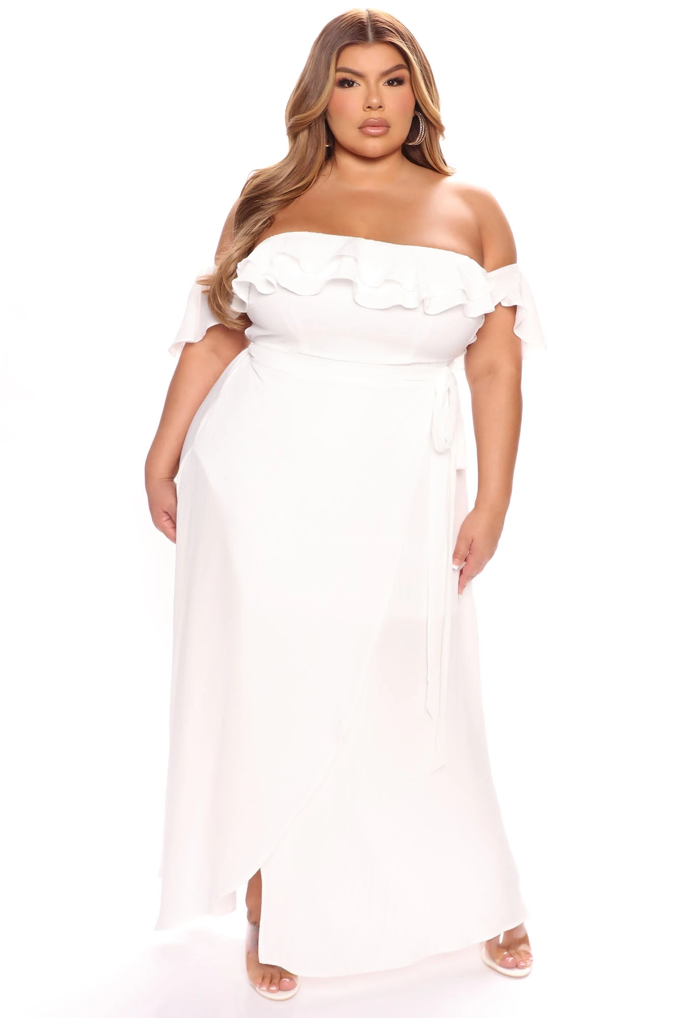 Fashion Nova Mara Off Shoulder Maxi Dress – White