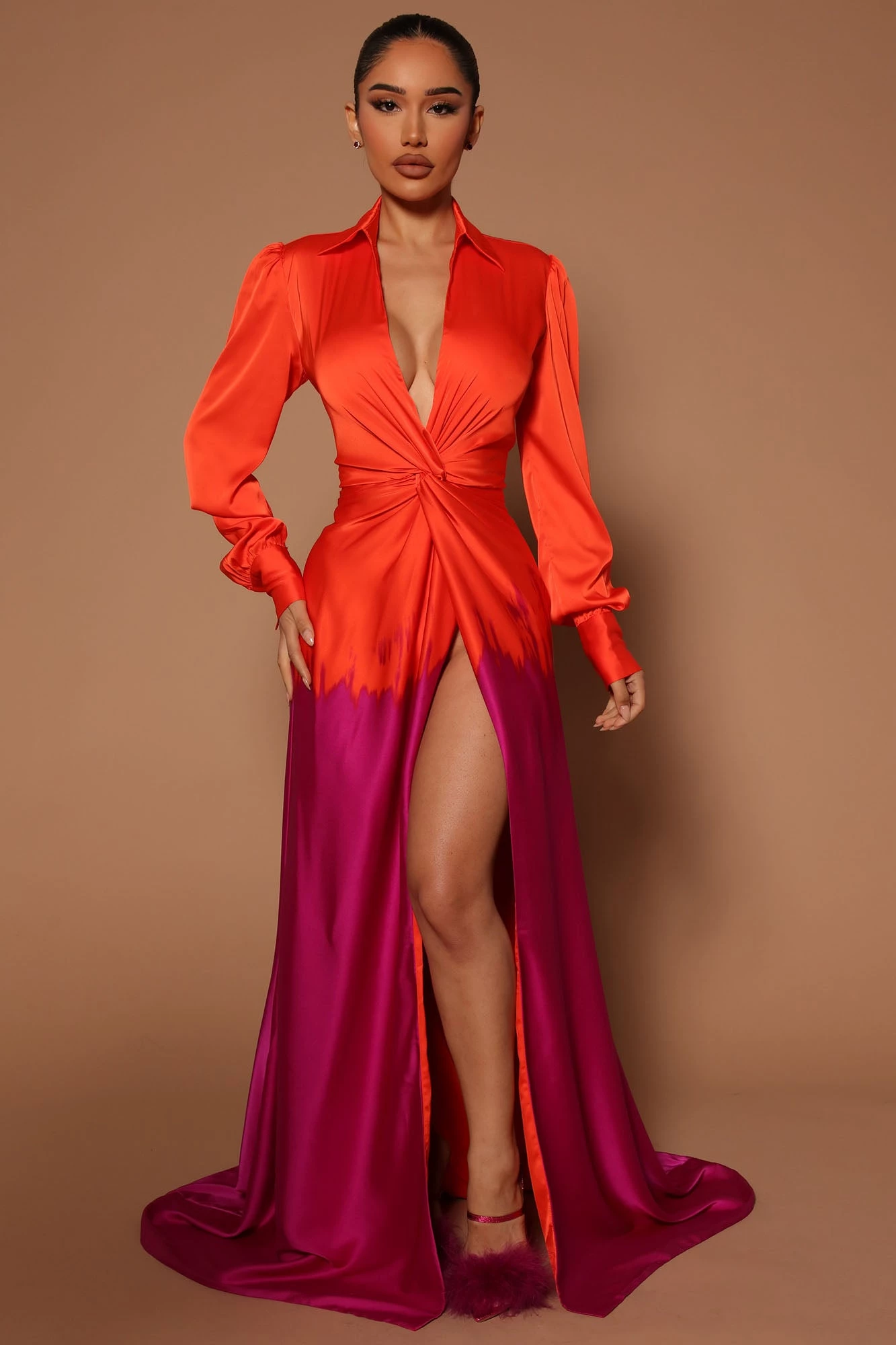 Fashion Nova Melissa Ombre Maxi Dress – Orange/combo
