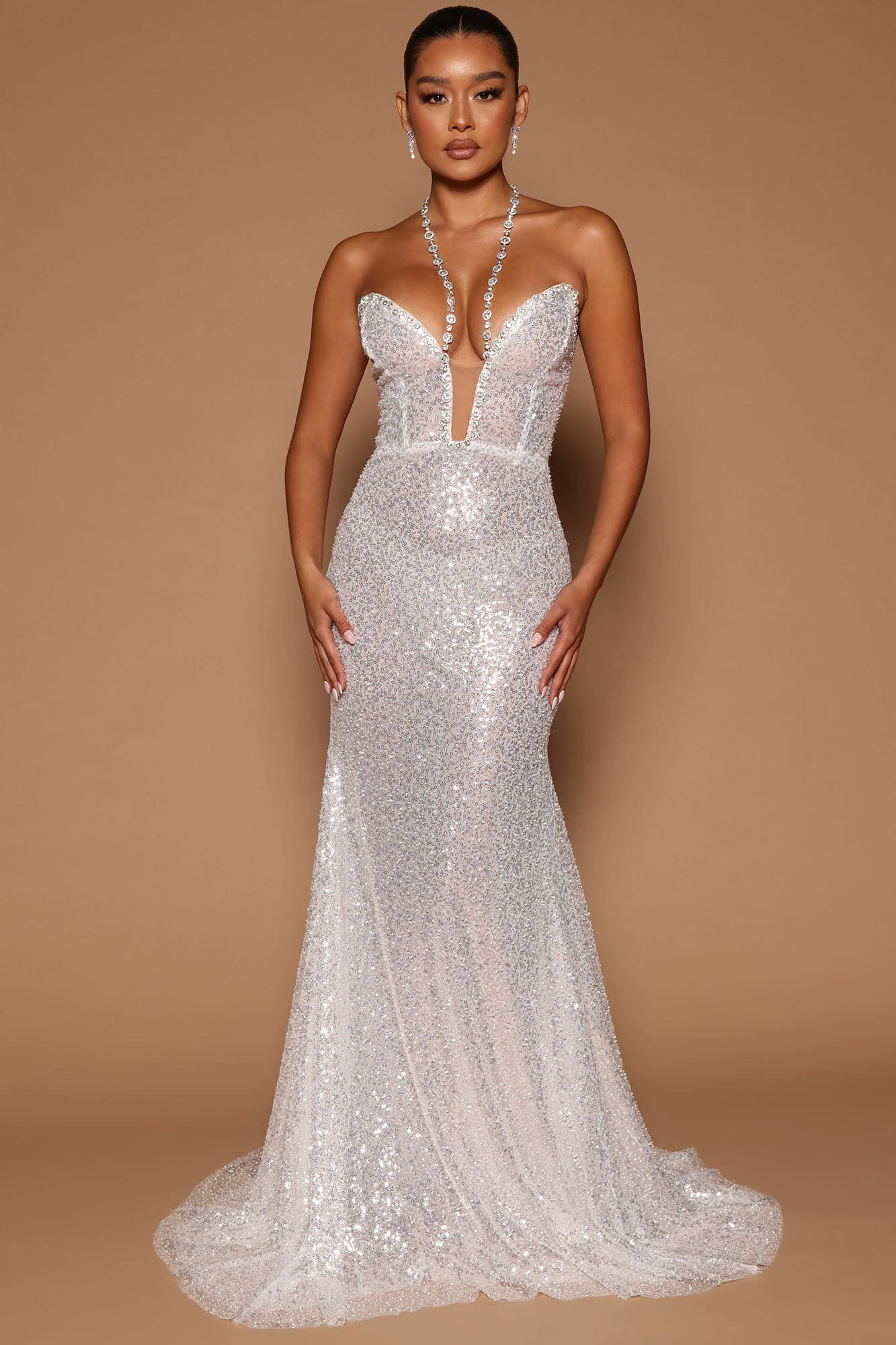 Fashion Nova Mellina Sequin Maxi Dress – White