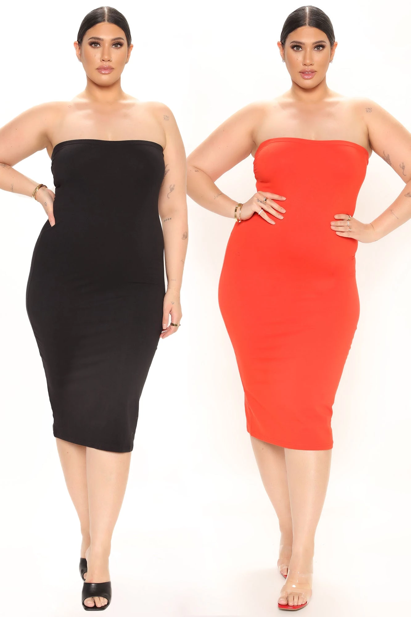 Fashion Nova Mia 2 Pack Midi Dress – Red/combo