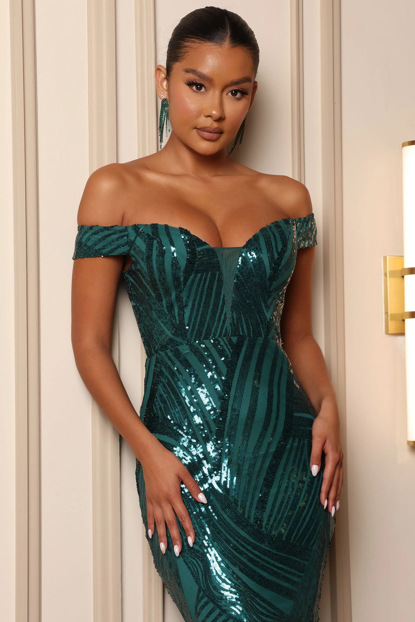 Fashion Nova Mona Sequin Maxi Dress – Emerald