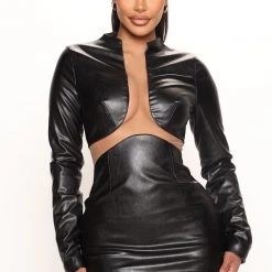 - Faux Leather Mini Dress