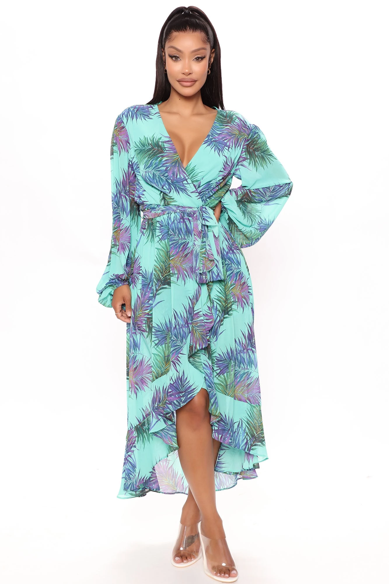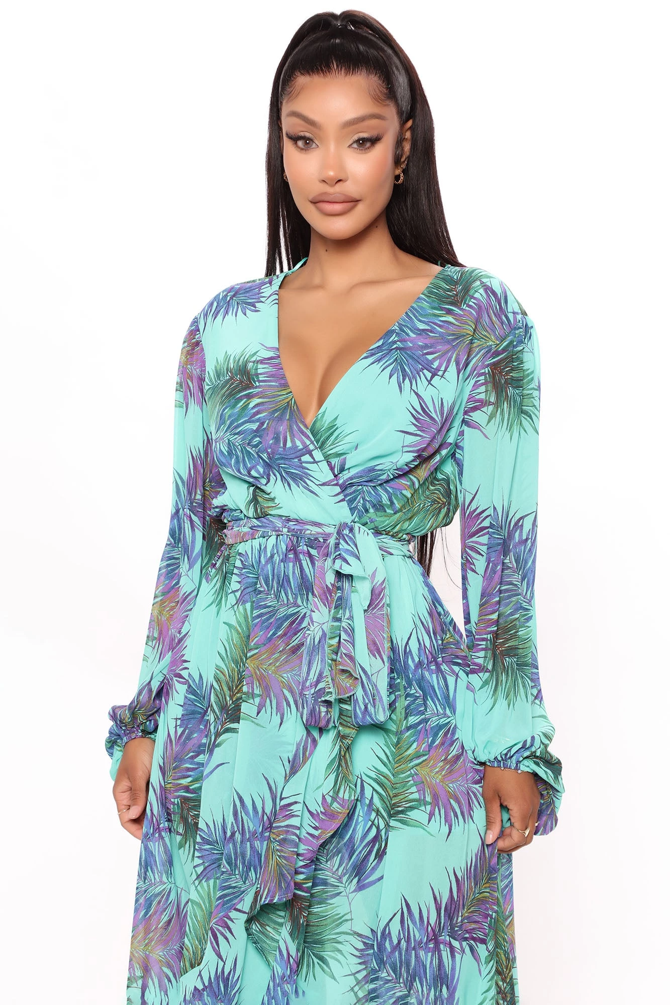 Fashion Nova Nadine Long Sleeve Midi Dress – Teal/combo