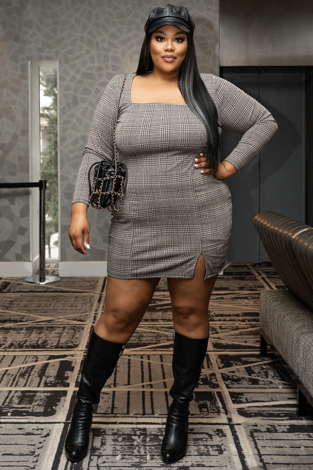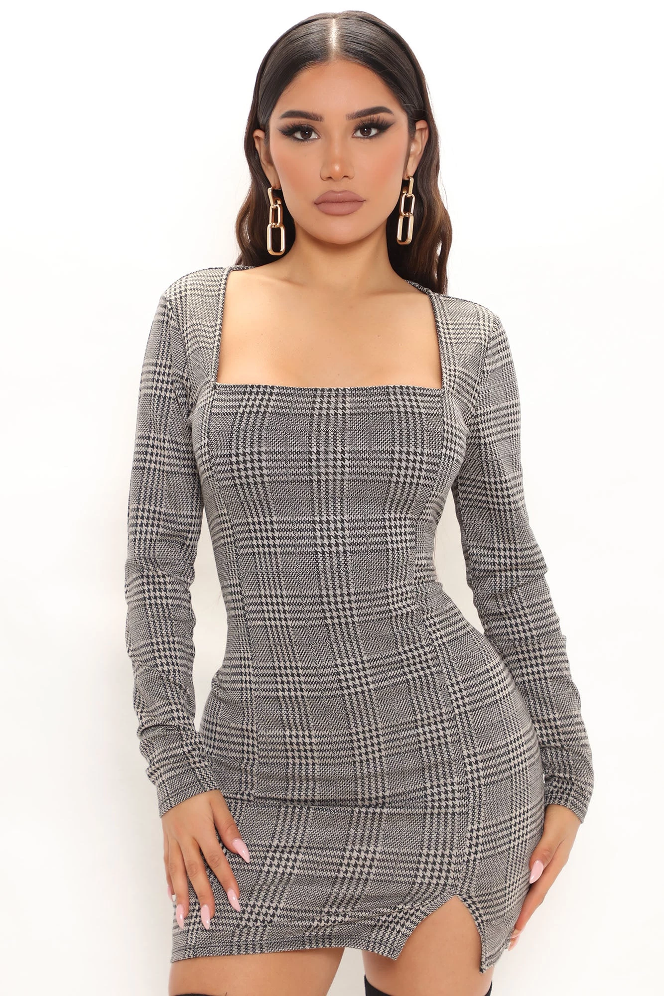 Fashion Nova New Boss Plaid Mini Dress – Black/combo