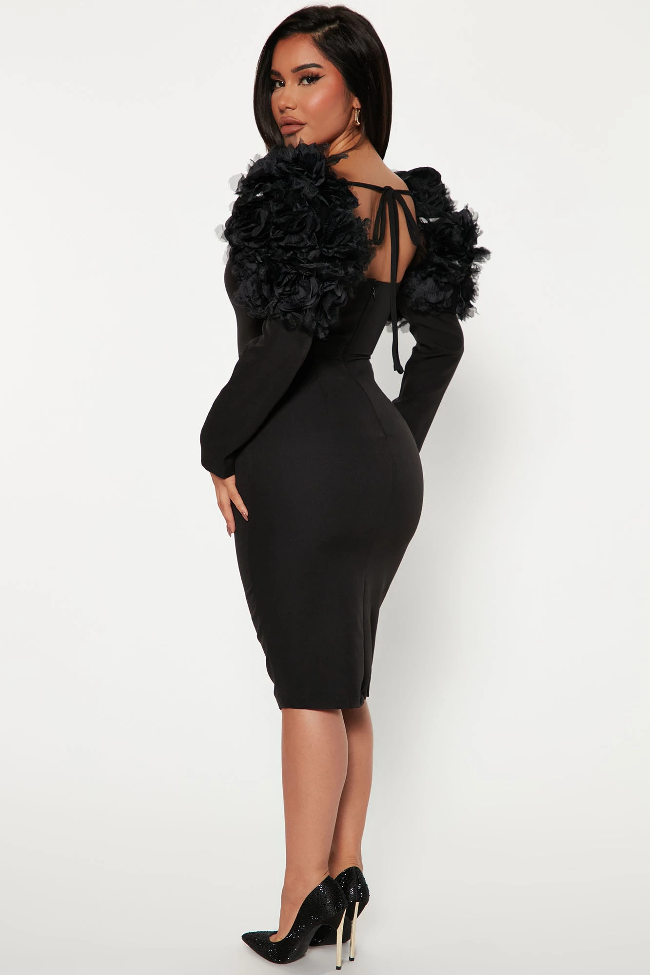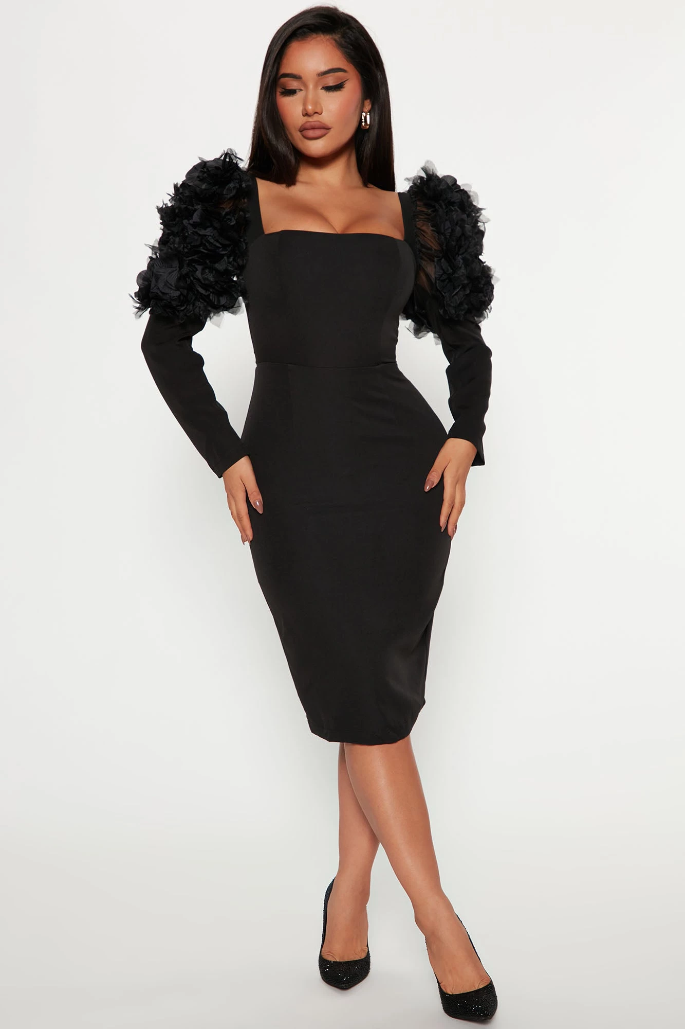 SKU: 6537104818300 Category: Midi Dresses Tags: All Promo, atticket, Club, color:Black, ColorFam-Black, detail:Puff Sleeve, Dresses, fallbogo, LBD
