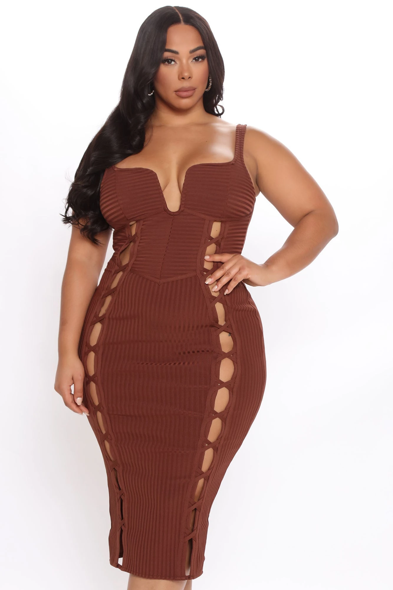 Fashion Nova No Cuts Given Bandage Midi Dress – Brown