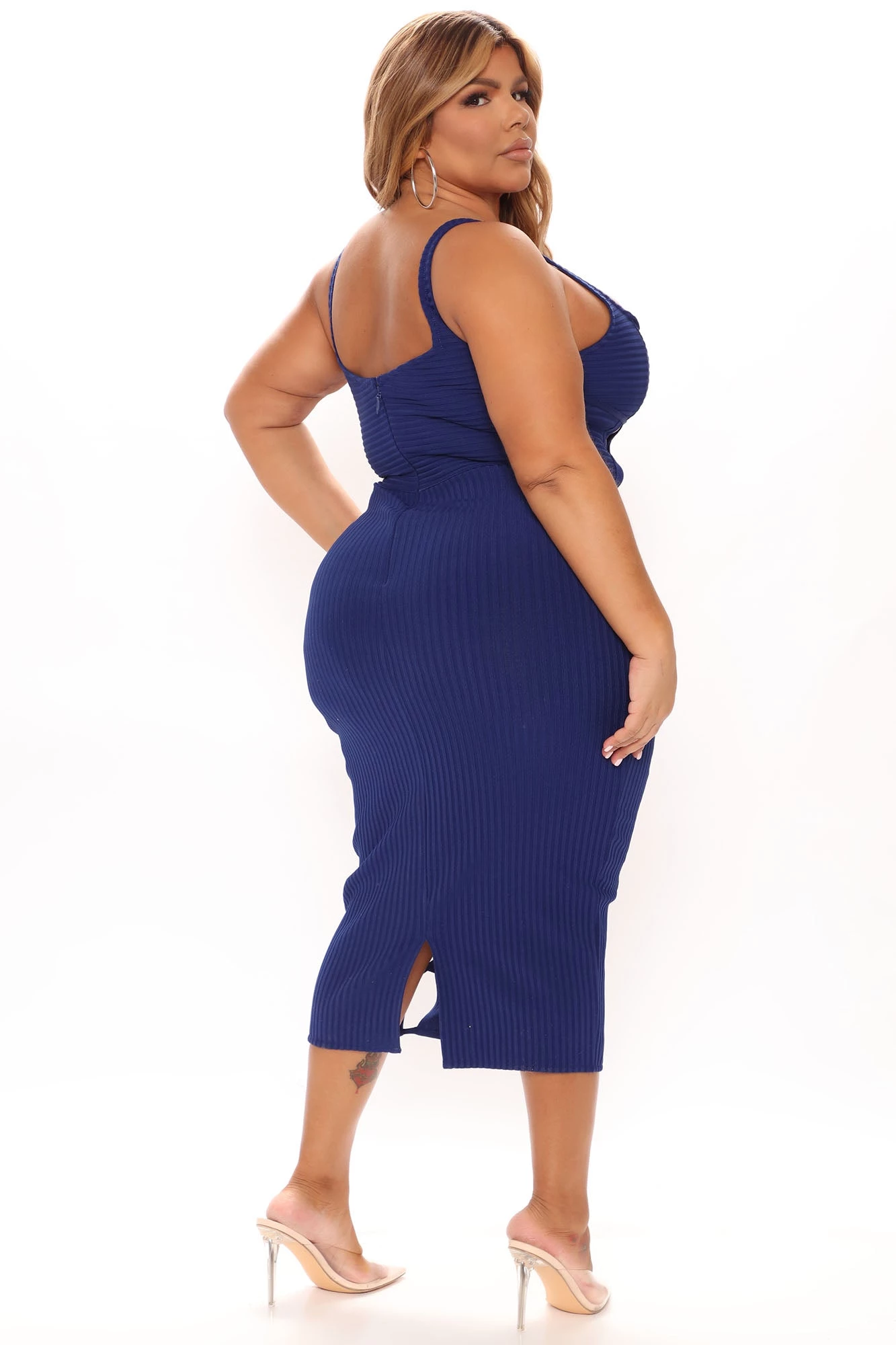 Fashion Nova No Cuts Given Bandage Midi Dress – Navy