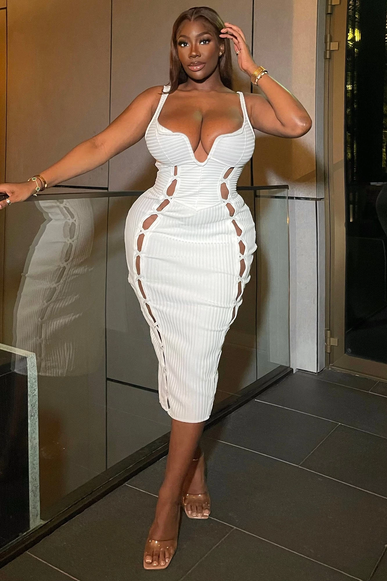 Fashion Nova No Cuts Given Bandage Midi Dress – White