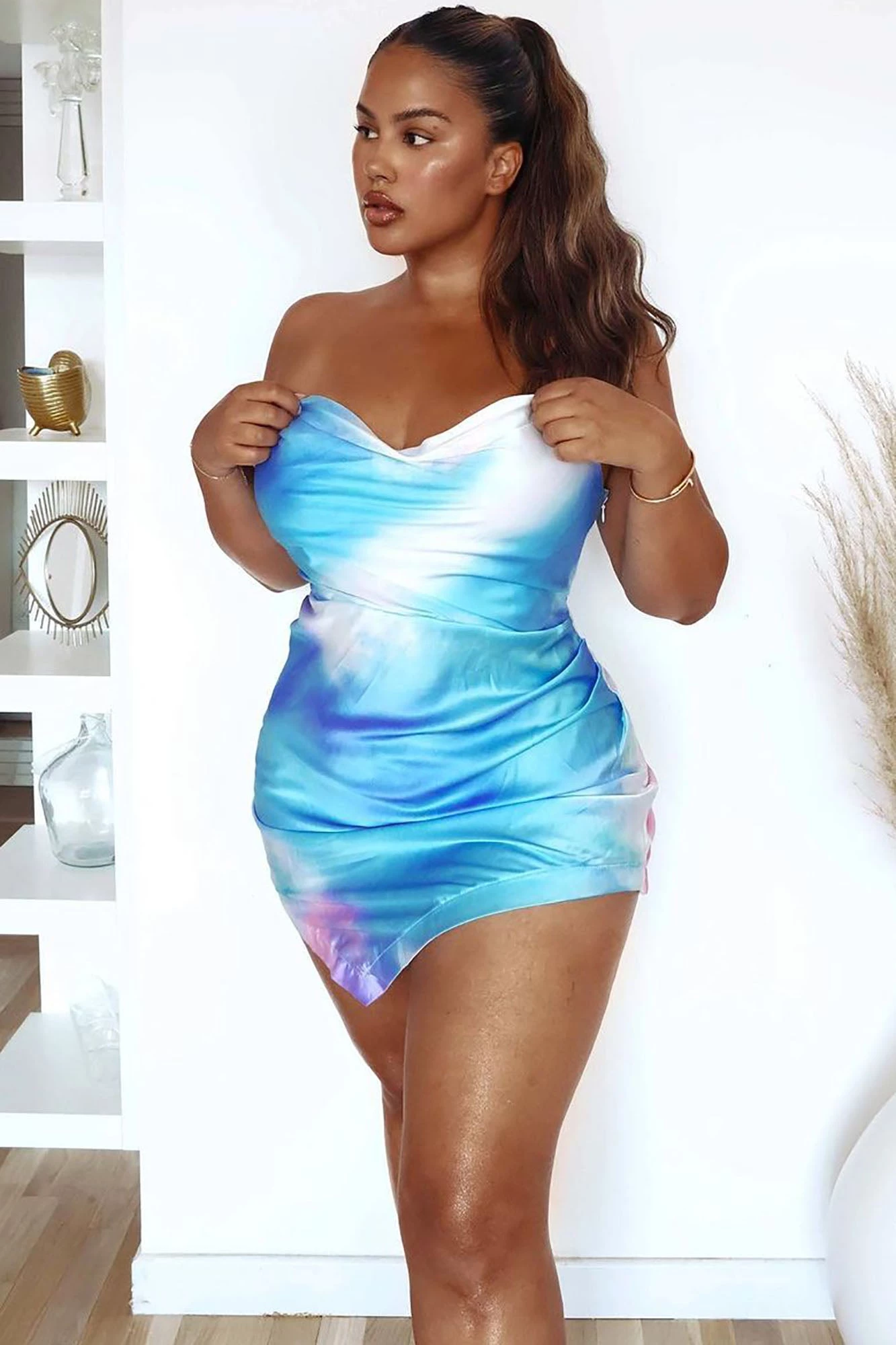 SKU: 1320932016252 Category: Short & Mini Dresses Tags: All Promo, Back in Stock, Club, color:Blue/combo, ColorFam-Blue, Dresses, fabric:Satin, fallbogo, figure:Plus