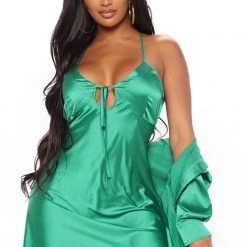 Fashion Nova On Tour Satin Dress Set – Kelly Green