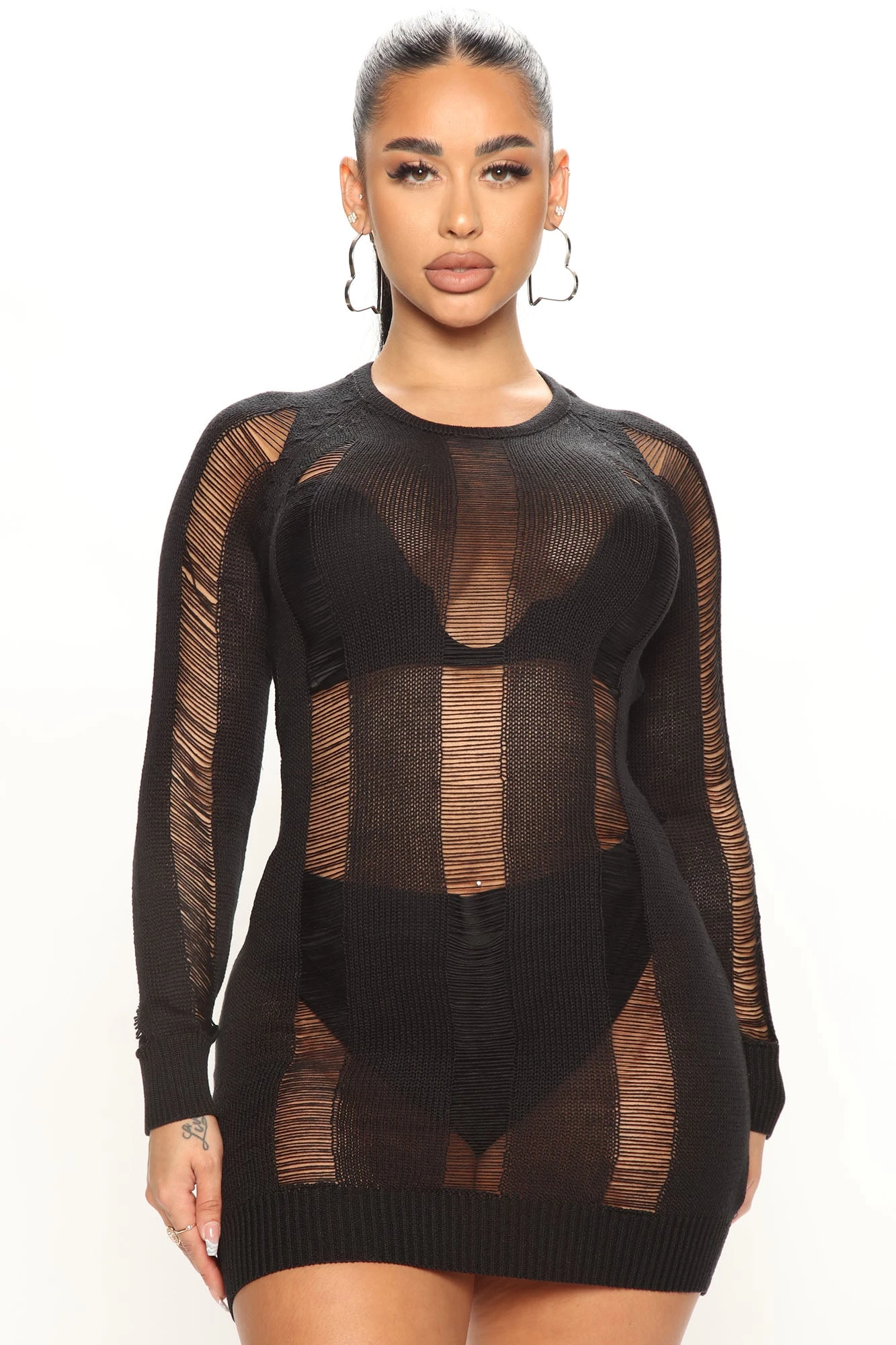 Fashion Nova On Trend Distressed Mini Dress – Black