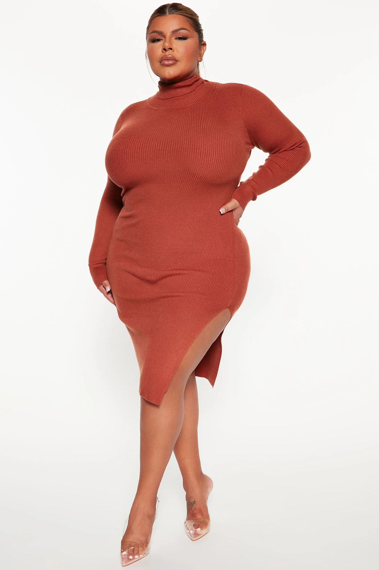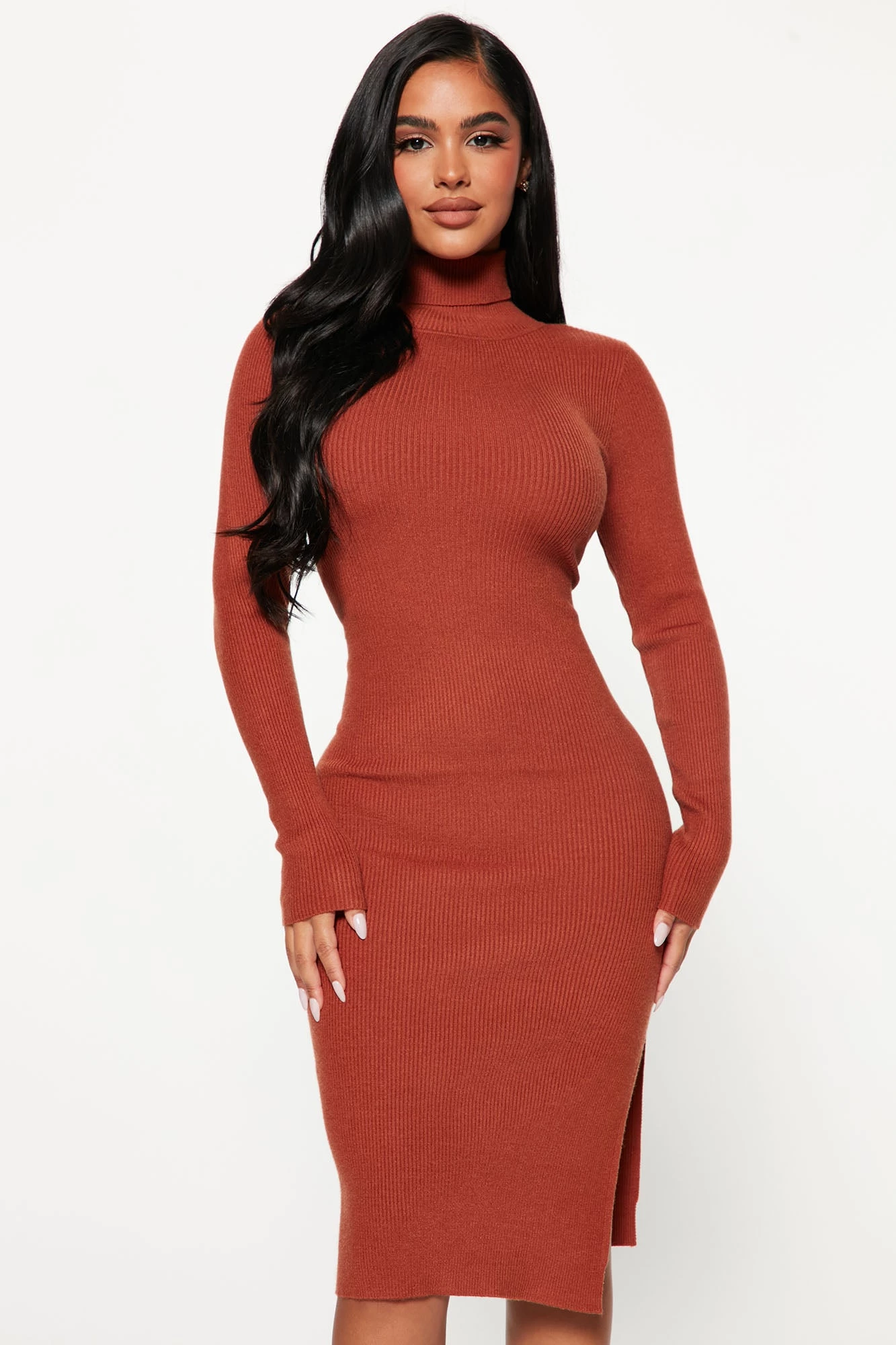 Fashion Nova One Chance Sweater Midi Dress – Rust