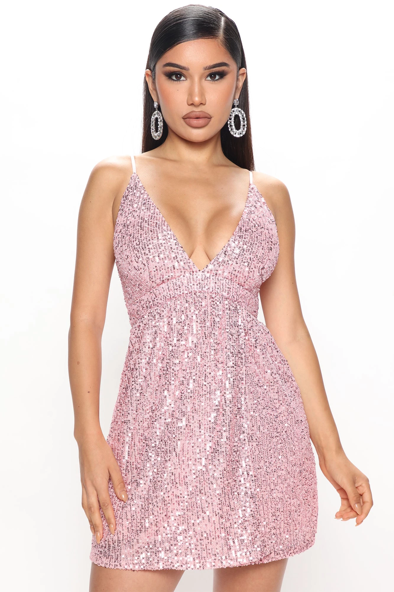 Fashion Nova One Last Time Sequin Mini Dress – Pink