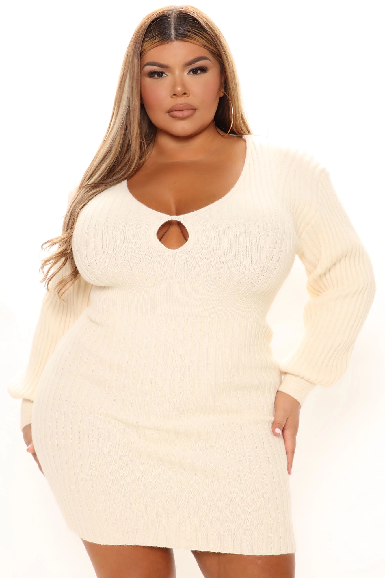 Fashion Nova Perfect Mood Sweater Mini Dress – Cream
