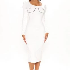 Fashion Nova Pierce My Heart Long Sleeve Midi Dress – White