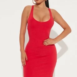 Fashion Nova Rachel Racerback Midi Dress – Red
