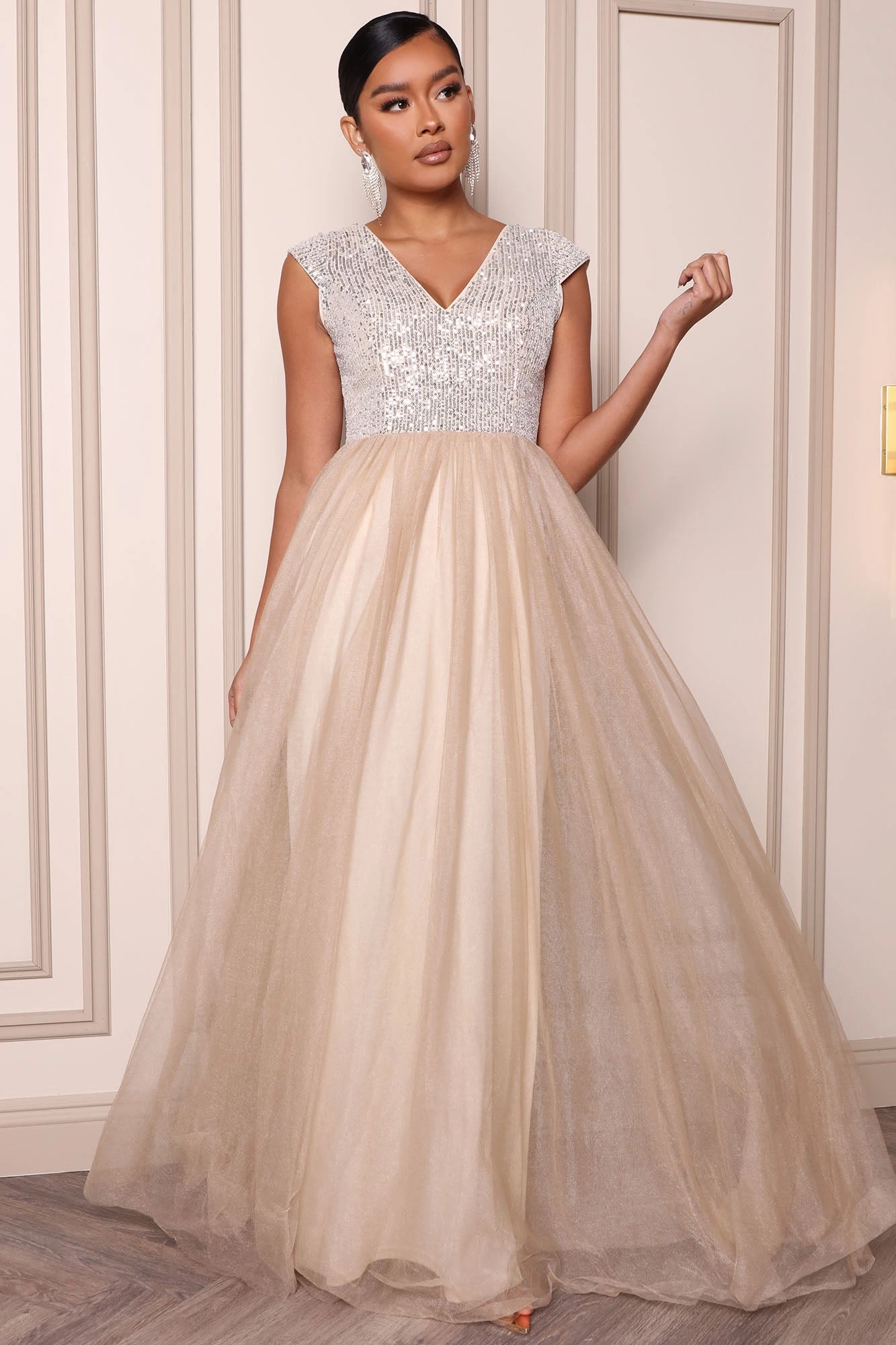 Fashion Nova Raise A Glass Maxi Dress – Beige