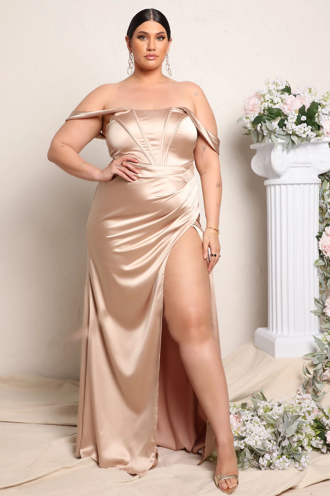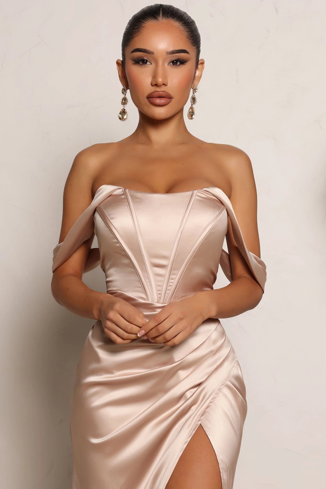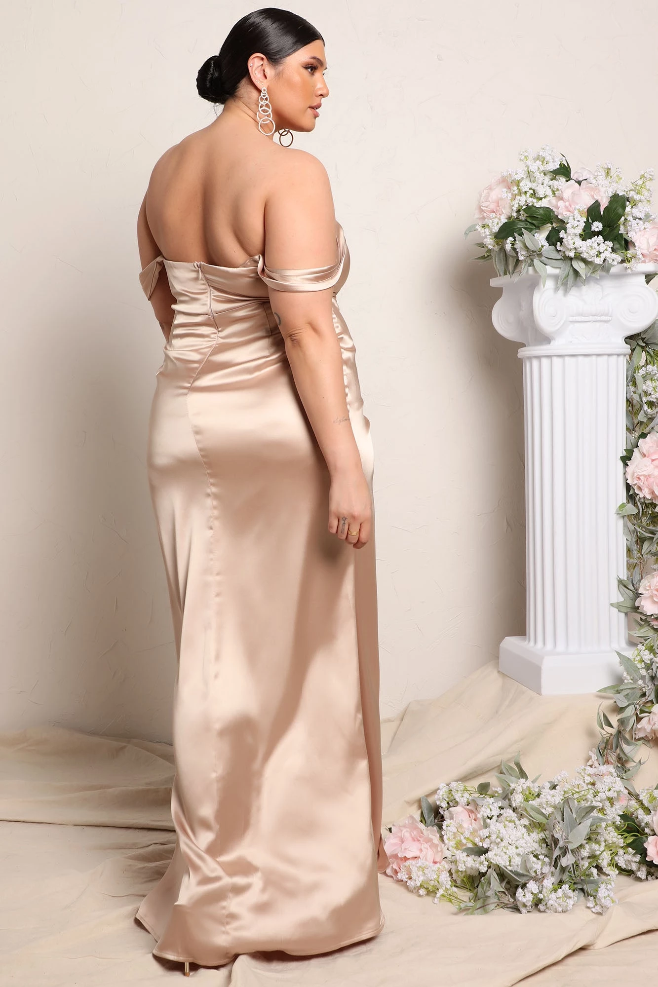 Fashion Nova Raise A Toast Satin Maxi Dress – Champagne